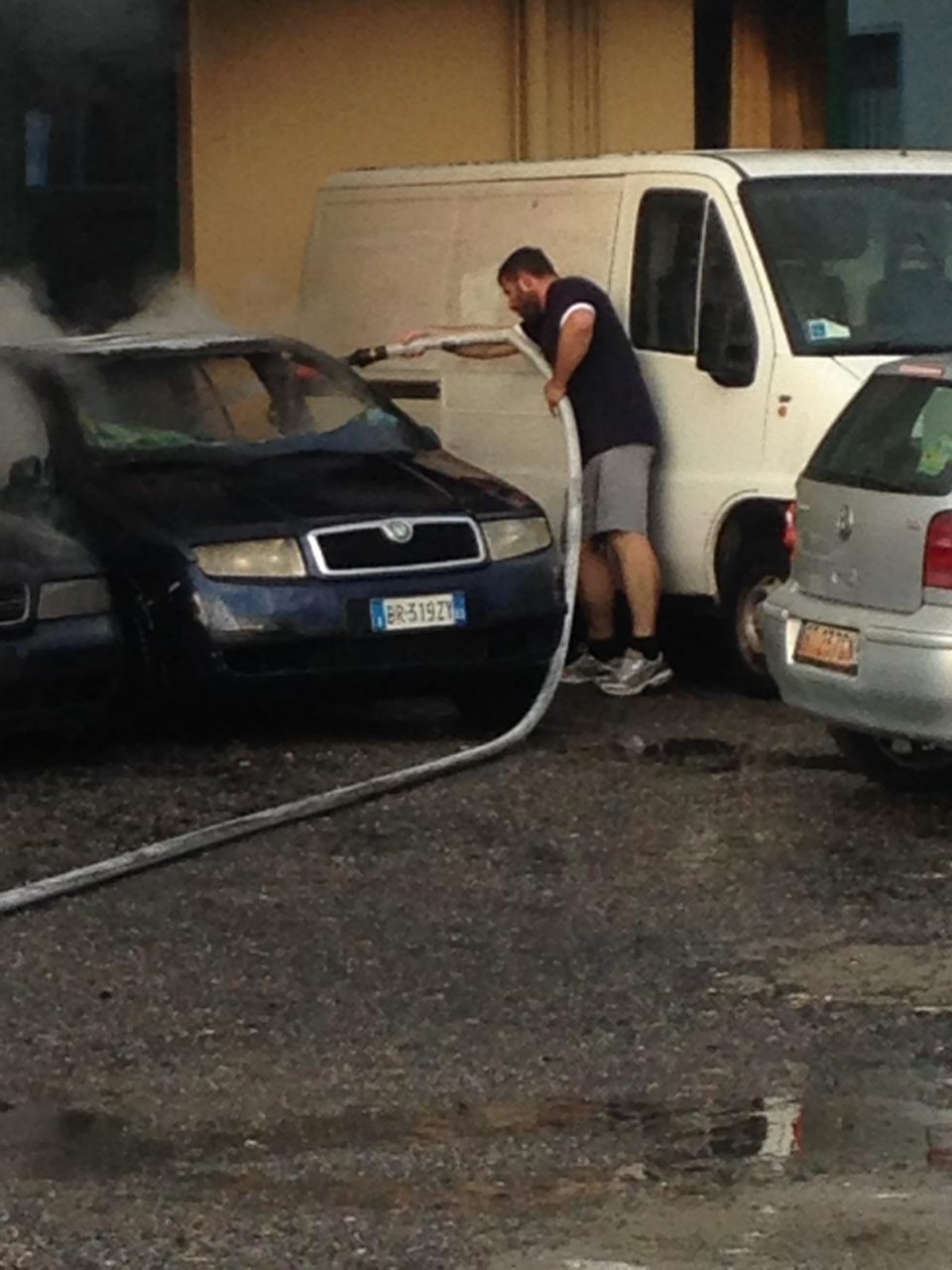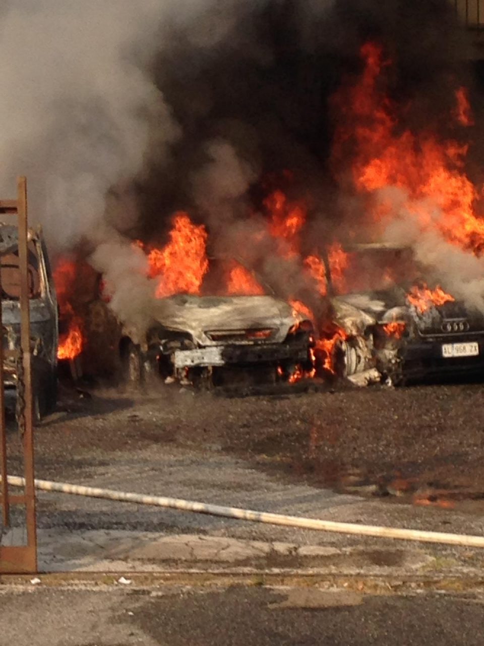 Si è sentita un’esplosione, poi una colonna di fumo nero si è levata tra Rovato e Cazzago fino all’autostrada. Quattro autovetture si sono incendiate nel cortile di un’officina. E’ successo alle 17 circa e subito è scattata la chiamata ai Vigili del fuoco. Un pompiere in borghese che si trovava nelle vicinanze è intervenuto subito e, dopo aver preso una canna dell’acqua dal vicino colorificio ha cominciato a spegnere le fiamme. L’aria intorno all’officina è irrespirabile, mentre sul posto si stanno dirigendo i Vigili del fuoco di Brescia, Chiari e Palazzolo per mettere in sicurezza l’area.