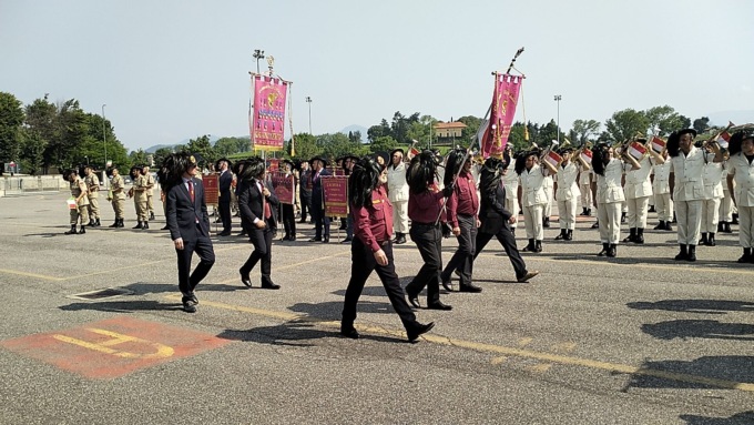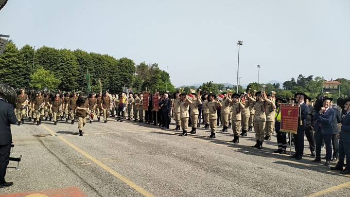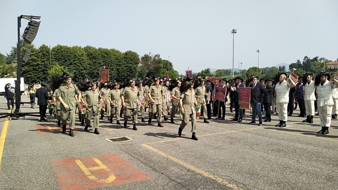 Questa mattina alle 8 l’ammassamento al Foro Boario; alle 9.30 l’alzabandiera con onori, formazione dello schieramento e allocuzioni; alle 10.30 la partenza del corteo; alle 11 la deposizione della corona al Monumento al Bersagliere e l’omaggio alla Cappella della Madonna del cammino; da qui il corteo diretto a passo di corsa fino al Foro Boario. Presenti autorità, Crocerossine in alta uniforme, fanfare, pattuglie ciclisti, gruppi storici con in più il sorvolo aereo con fumogeni tricolore.