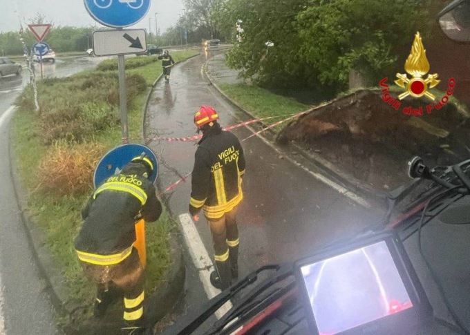 Un altro albero è caduto in viale Venezia sempre in città a Brescia, direzione Rezzato. Anche i questo caso sono intervenuti i Vigili del Fuoco.