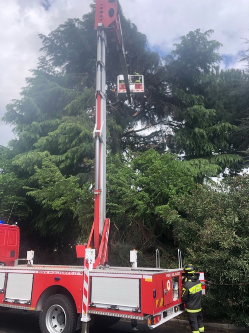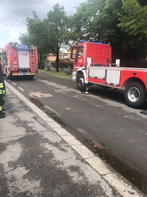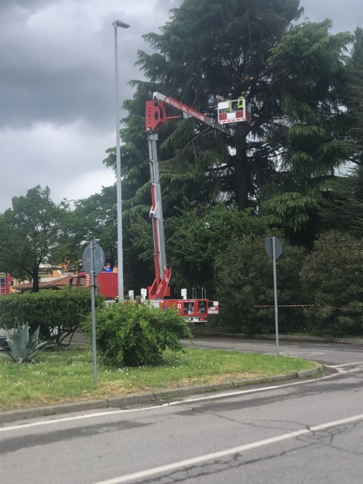 In via Foscolo rami pericolanti all’interno di una proprietà privata, sul posto i vigili del fuoco di Chiari con due mezzi.