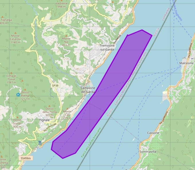 “Si raccomanda, pertanto, la cauta navigazione evitando l’attraversamento del campo di gara, la cui zona lacustre viene evidenziata in viola nell’allegato stralcio cartografico”.