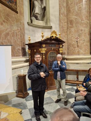 Responsabile dei lavori di restauro è stata la dottoressa Marina Baiguera che mercoledì sera ha spiegato ai presenti come essenzialmente si sia trattato di un lavoro di pulitura che ha riportato all’origine lo splendore dei marmi bianchi di Carrara, di quelli verde intenso e dei lapislazzuli che impreziosiscono il tabernacolo, esso stesso opera di mirabile fattura. L’altare, è stato ricordato, avrebbe bisogno anche di un intervento strutturale ma si è deciso di non affrontare il lavoro completo per la delicatezza della situazione agendo invece con azioni di consolidamento.
