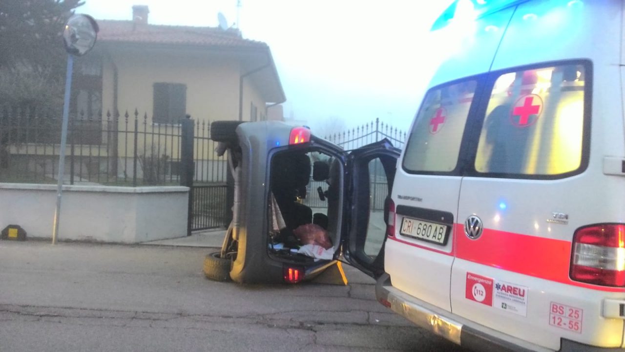 Ribaltamento a Passirano: soccorsi in azione. La chiamata era partita in codice rosso, ma fortunatamente tutto è andato per il meglio.