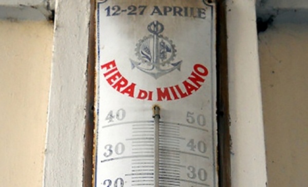 Si tratta, per essere precisi, di un termometro in metallo degli anni ’30 su supporto ligneo dell’altezza di circa 90 centimetri e larghezza 30 centimetri. L’ampolla è in mercurio rossa.