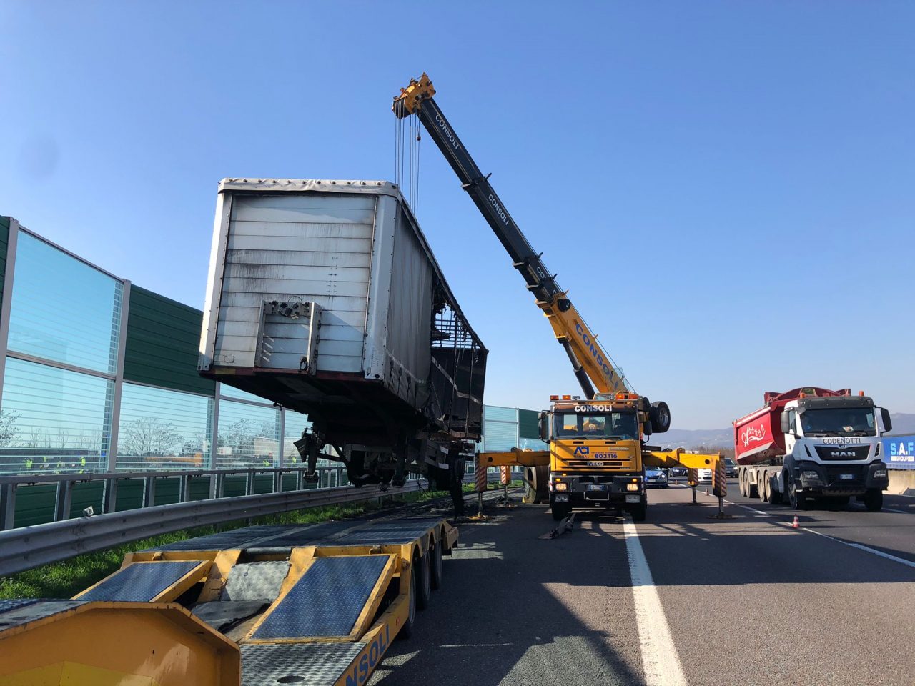 Il camionista è rimasto illeso e anche la motrice è salva, mentre il rimorchio è stato danneggiato dalle fiamme. Sul posto sono intervenuti i Vigili del fuoco di Palazzolo e gli agenti della Polizia stradale. La presenza dei mezzi di soccorso prima e le complesse operazioni di recupero poi hanno avuto inevitabili ripercussioni sul traffico, seppur non sia stato necessario chiudere il tratto tra Rovato e Palazzolo. Nella stessa mattinata un camion ha preso fuoco a Covelo.