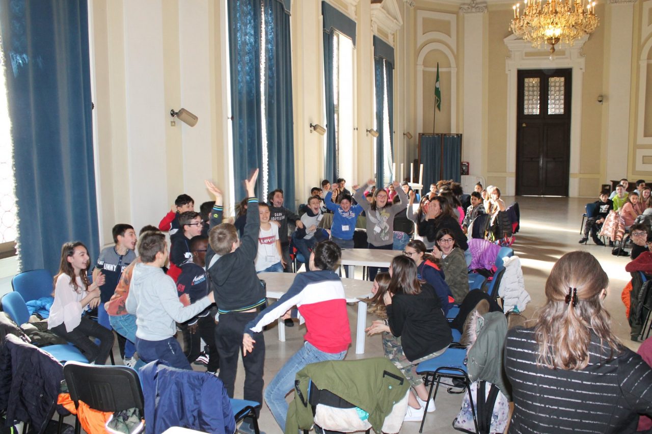 Alla cerimonia di premiazione hanno partecipato i soggetti che nel corso dell’anno hanno contribuito e reso possibile il progetto, partito un anno fa e giunto a termine con la finale. Michele Scalvenzi di Fondazione Cogeme ha portato il suo saluto ribadendo i principi che hanno ispirato la gara, soprattutto i valori espressi nella “Carta della Terra”, uno dei principali riferimenti etici per l’educazione alla sostenibilità. Nel suo discorso, Scalvenzi ha ribadito l’importanza di mettere al centro della formazione i temi della sostenibilità e dell’ecologia, ricordando l’importante evento “Friday for future”, lo sciopero per il clima – in programma venerdì 15 marzo – promosso da Greta Thunberg, la giovanissima attivista svedese per il clima. Particolarmente sentito anche il saluto di Laura Capitanio, assessore alla Cultura, che ha ricordato come l’essere umano debba cibarsi non solo di alimenti ma anche di parole, di storie, per una crescita non solo nel fisico ma anche nello spirito. Il direttore del Sistema Bibliotecario Sud Ovest Bresciano, Fabio Bazzoli, ha ringraziato i ragazzi arrivati in finale, per l’impegno messo in campo, e i loro insegnanti, per averli sapientemente guidati e motivati lungo tutti i mesi della gara. Al termine della finale tutti, non solo i vincitori, erano soddisfatti: oltre ai premi, materiale didattico targato “Sostenibilmente” (il nuovo progetto di Kyoto Club con il sostegno del Ministero dell’Ambiente e della Tutela del Territorio e del Mare) e biglietti d’ingresso al MuSe, il Museo delle Scienze di Trento, ciò che soddisfa maggiormente i ragazzi infatti è l’aver partecipato a un gioco divertente che, senza nemmeno accorgersene, fa diventare gli alunni degli accaniti lettori.