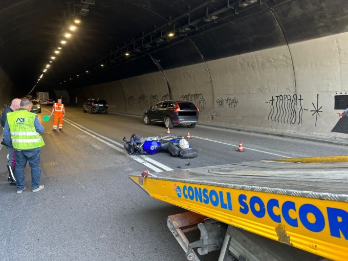 Scontro frontale auto-moto all’imbocco della galleria