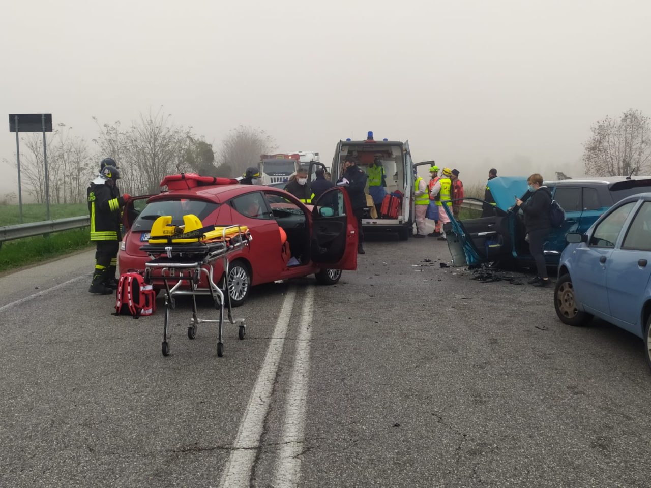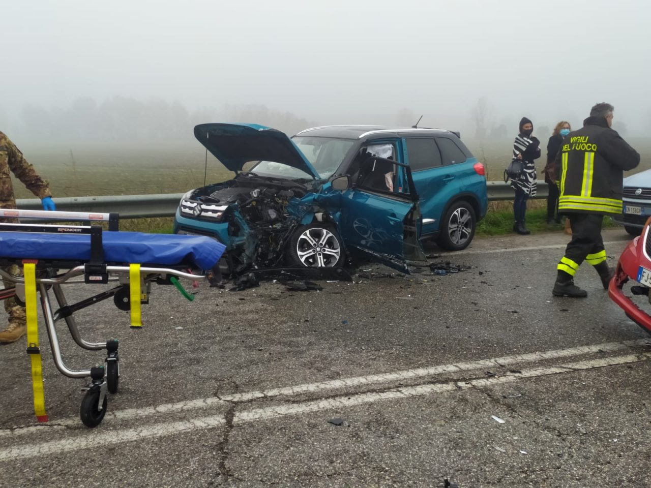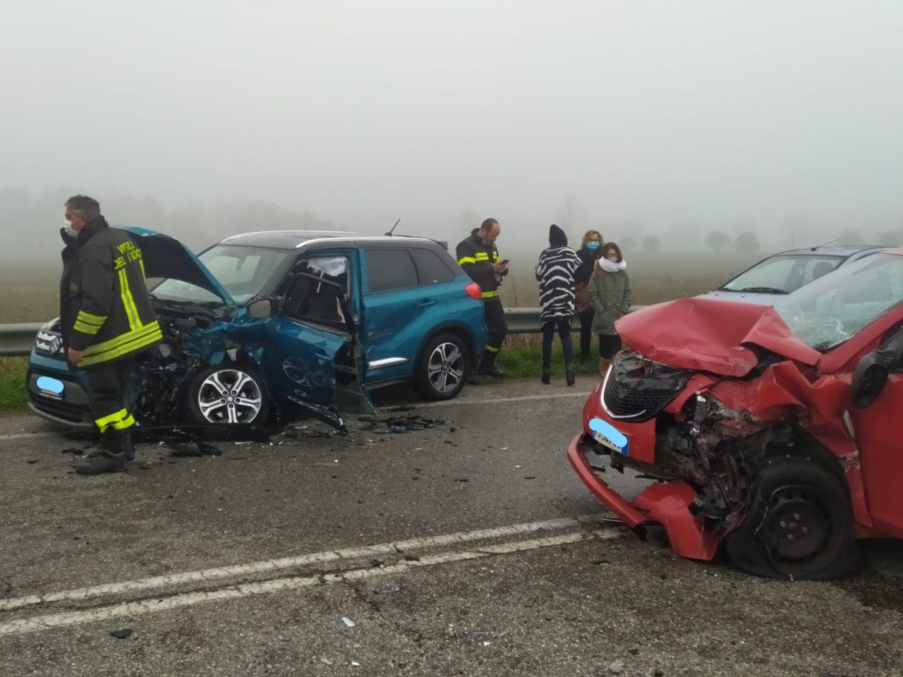 Scontro frontale, i conducenti estratti dalle auto dai Vigili del Fuoco LE FOTO