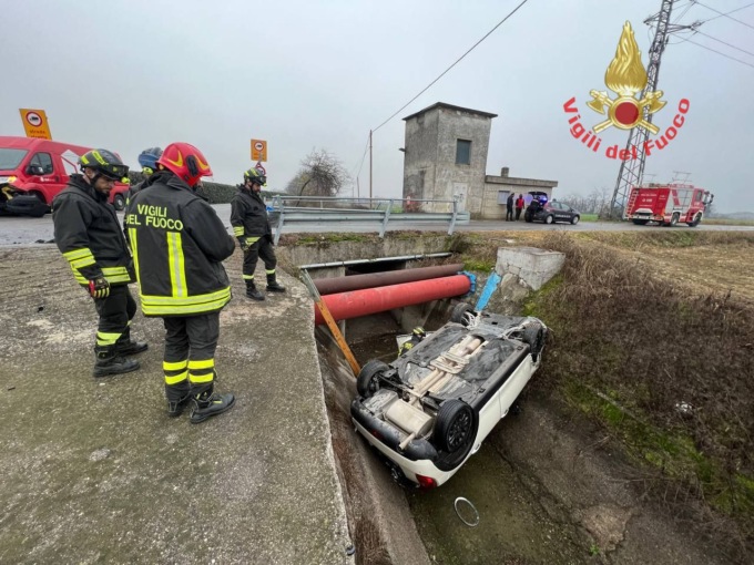 Nonostante la dinamica importante fortunatamente l’uomo alla guida dell’auto è rimasto si ferito ma non in gravi condizioni. Ad intervenire prontamente sul posto l’ambulanza e i Carabinieri per gli opportuni rilievi del caso. Necessaria inoltre la presenza dei Vigili del Fuoco, presenti con l’autogrù, che hanno provveduto a recuperare l’auto.