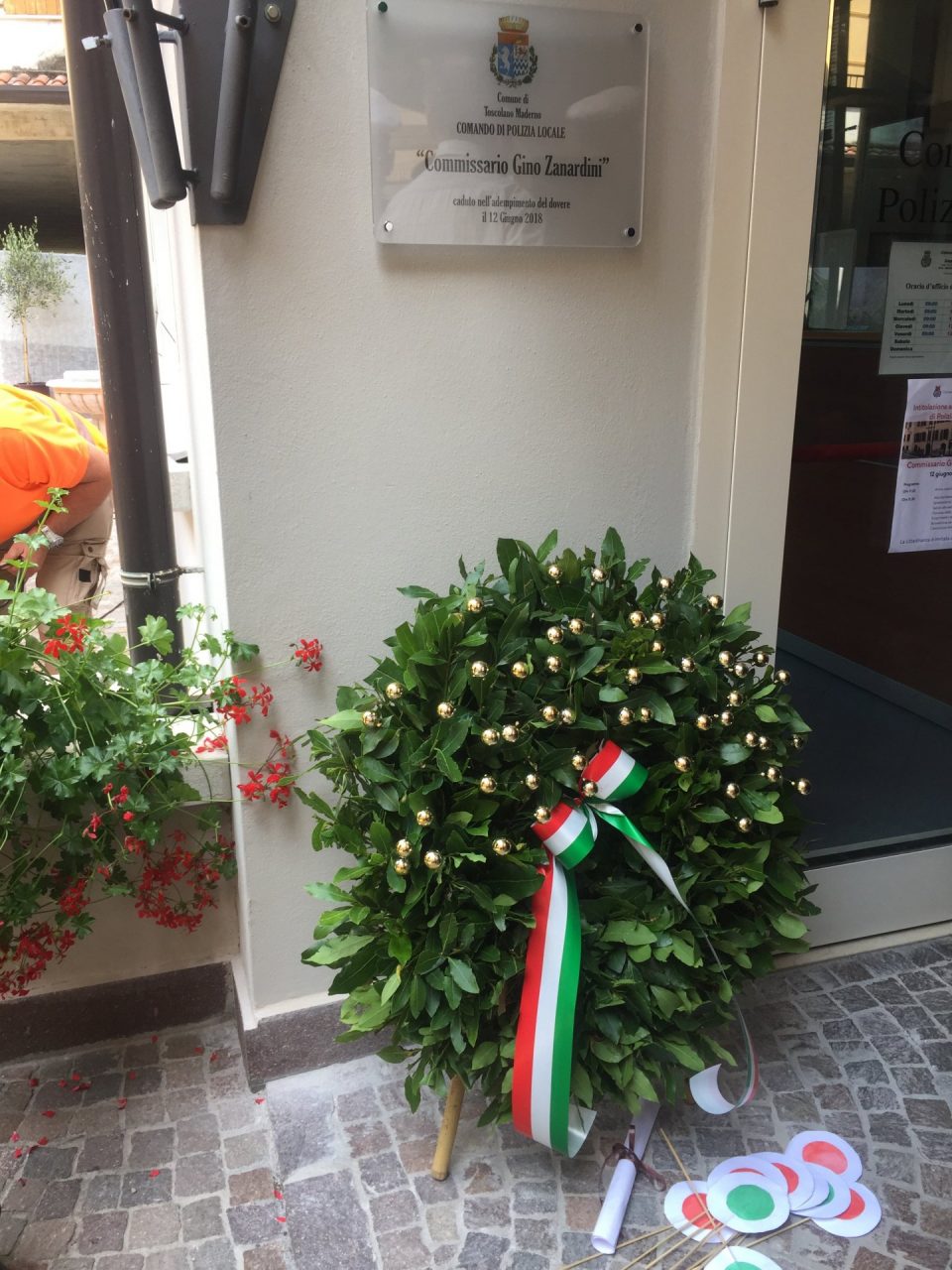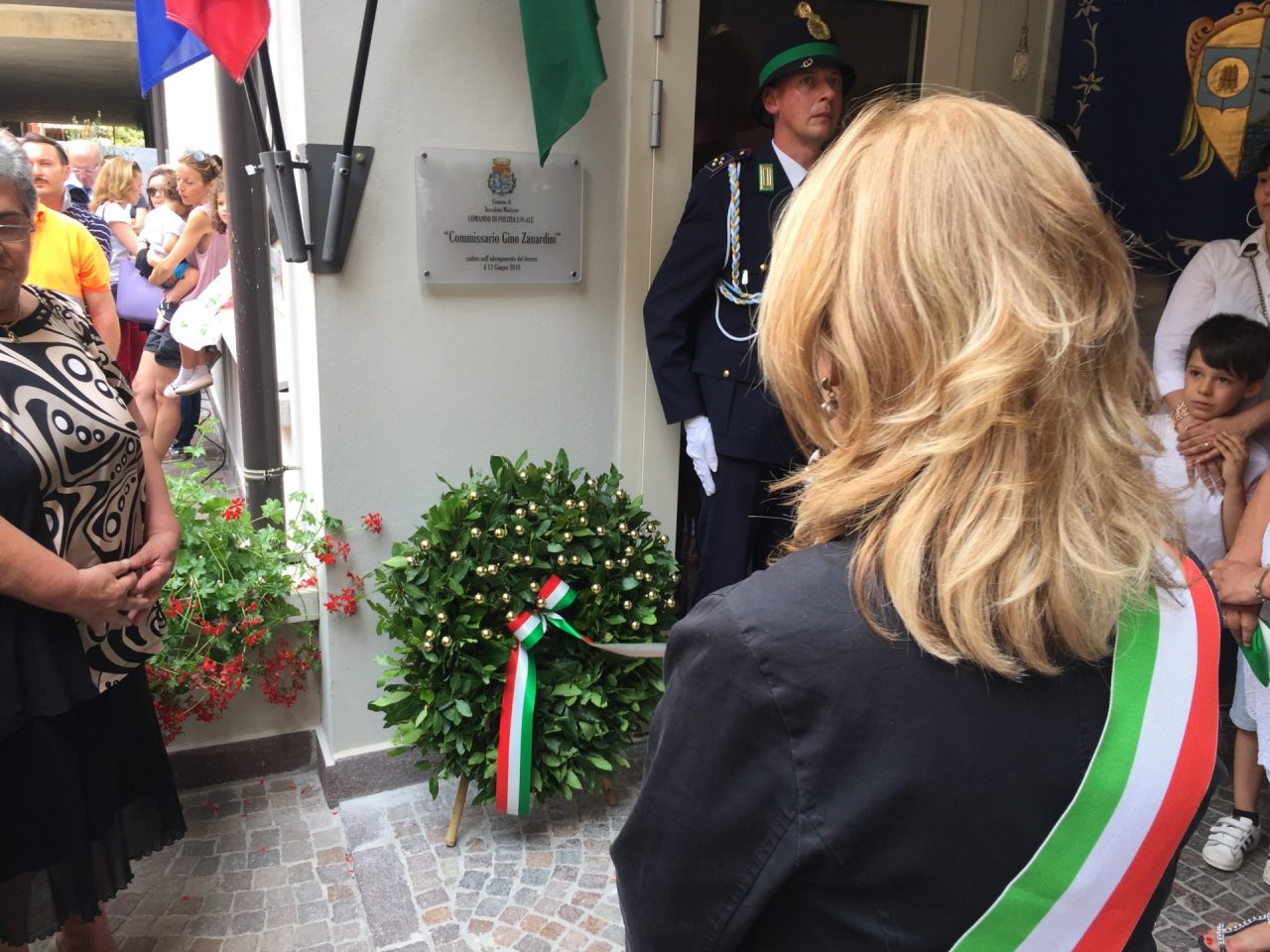 Scoperta questa mattina la targa che intitola al commissario Gino Zanardini il comando della Polizia Locale di Toscolano Maderno.