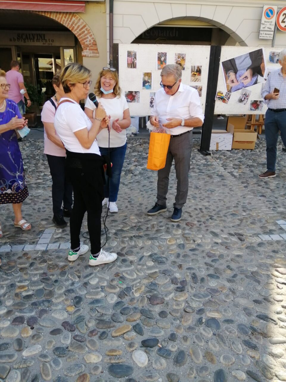 Presenti Laura Lanzini, presidente dell’associazione Oasi, e il sindaco Gianpietro Maffoni al quale è stata regalata la coperta della moglie Giovanna, scomparsa durante la pandemia.