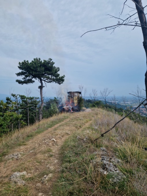 Si incendia un capanno di caccia sul Monte Orfano, rischio esplosione