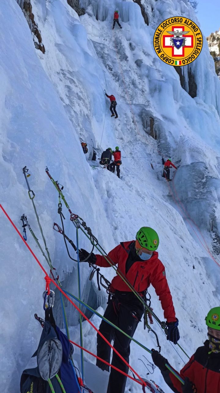 Raggiungere velocemente la zona dell’evento, individuare la cordata in difficoltà e mettere in sicurezza gli infortunati sono tutti aspetti che impegnano molto i nostri tecnici. L’intervento su ghiaccio è sempre complesso e necessita di esperienza e professionalità. A fianco dei soccorritori c’erano gli istruttori sanitari del Cnsas (Corpo nazionale Soccorso alpino e speleologico), che fanno da supervisori per garantire il rispetto dei protocolli condivisi. I passaggi fondamentali sono la valutazione del paziente, le comunicazioni con la sala operativa, l’utilizzo corretto dei presidi in dotazione: l’aspetto tecnico e quello sanitario sono strettamente collegati.
