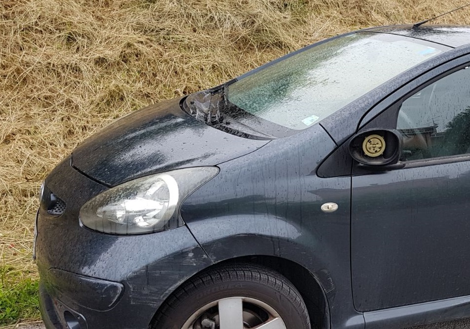 (Nella foto un’auto dei residenti danneggiata dalla fuga)