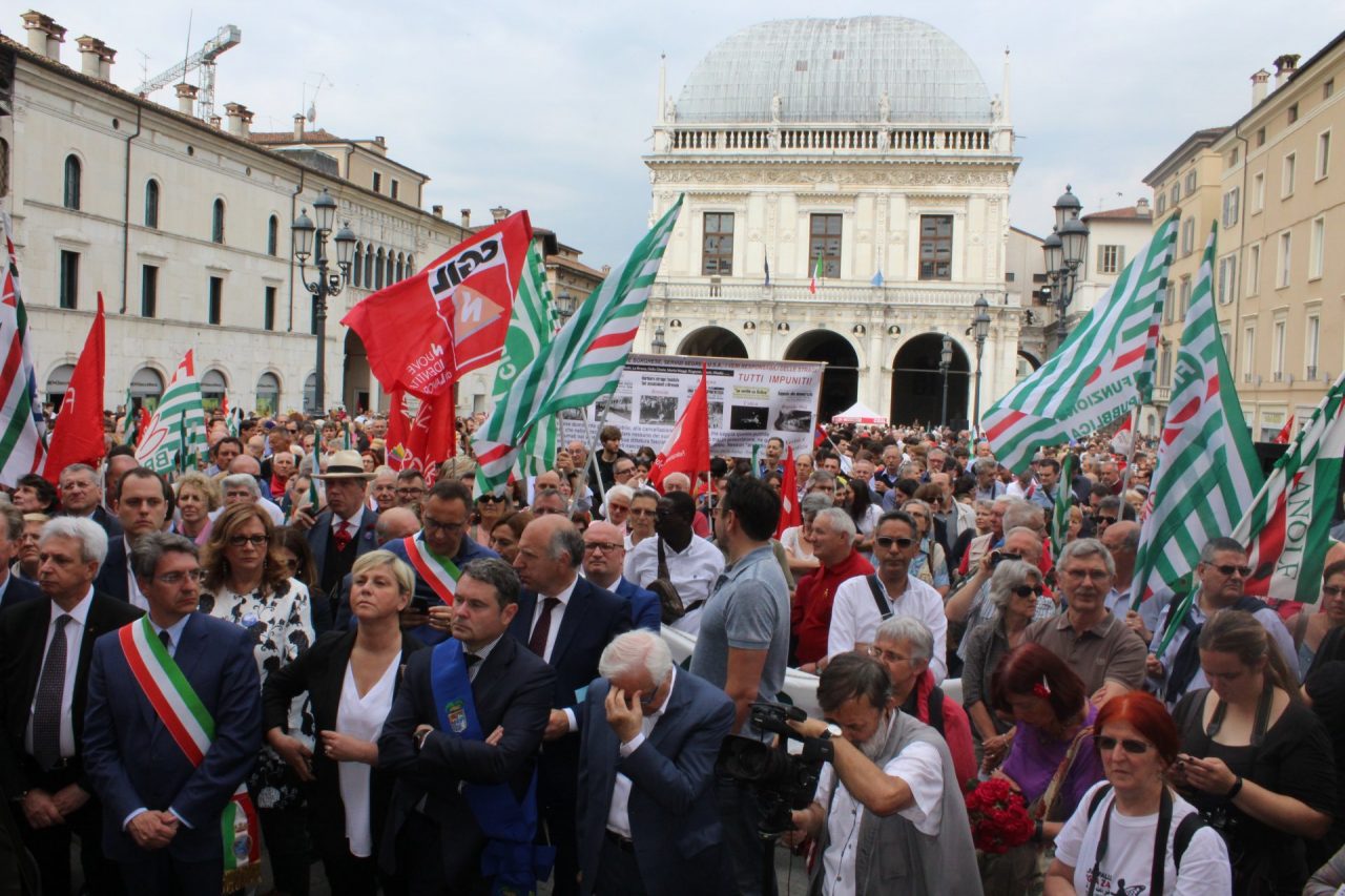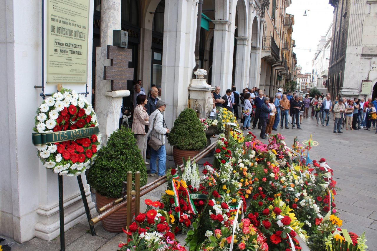 Brescia ha ricordato le otto vittime con i rintocchi della campana, con un minuto di silenzio e con diverse testimonianze per «non dimenticare» l’orrore del 28 maggio 1974. Le vittime allora furono Giulietta Banzi Bazoli, 34 anni, insegnante di francese, Livia Bottardi in Milani, 32 anni, insegnante di lettere alle medie, Alberto Trebeschi, 37 anni, insegnante di fisica, Clementina Calzari Trebeschi, 31 anni, insegnante, Euplo Natali, 69 anni, pensionato, ex partigiano, Luigi Pinto, 25 anni, insegnante, Bartolomeo Talenti, 56 anni, operaio, Vittorio Zambarda, 60 anni, operaio. Furono ferite dallo scoppio dell’ordigno anche un centinaio di presenti al comizio di allora.