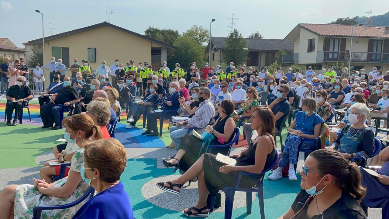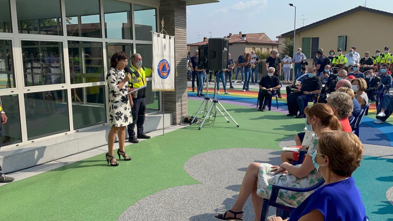 Presente all’evento anche il gruppo di Protezione Civile comunale e il gruppo Alpini che ha aiutato, a titolo volontario, a fare il trasloco dalle tre vecchie scuole dell’infanzia al nuovo plesso scolastico. Grazie al dono della Fondazione Alessandra Bono ora le tre scuole si sono infatti riunite in un unico plesso.