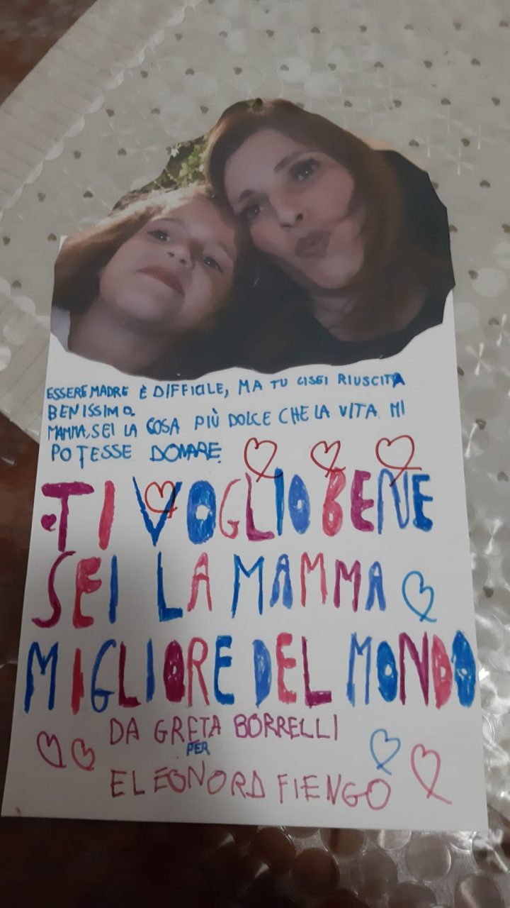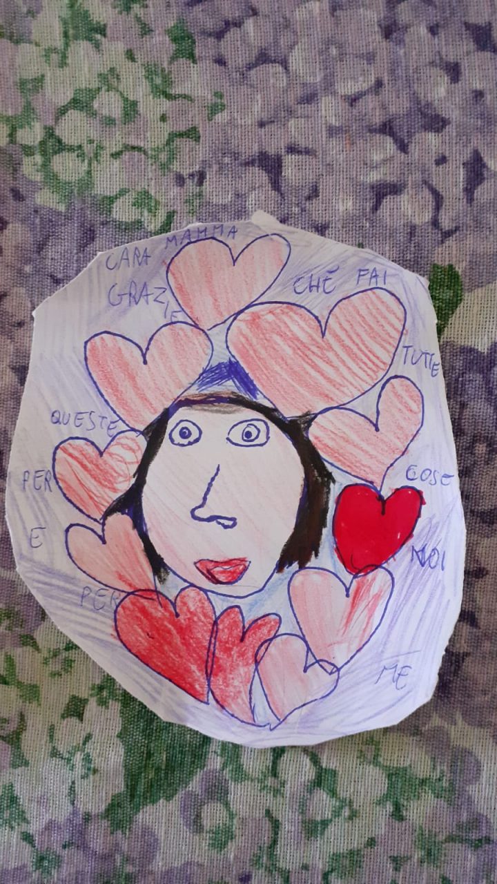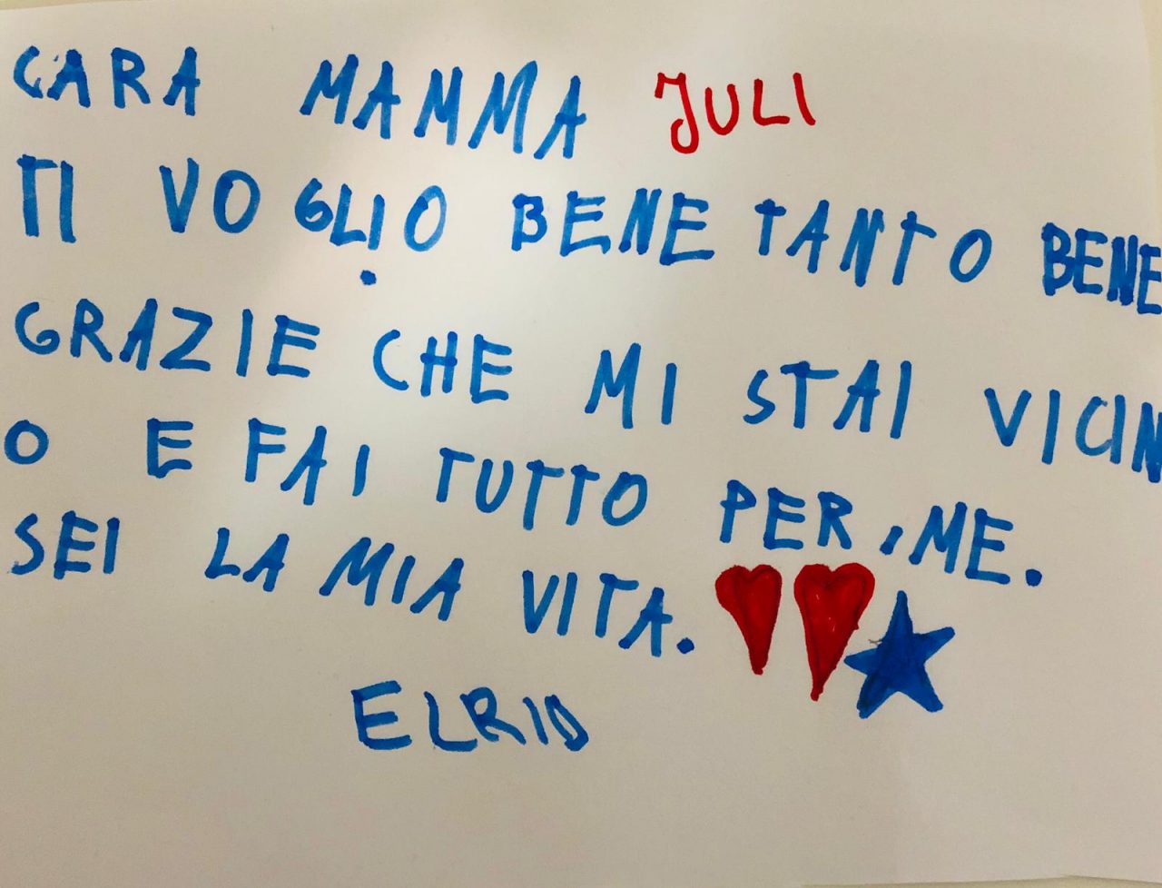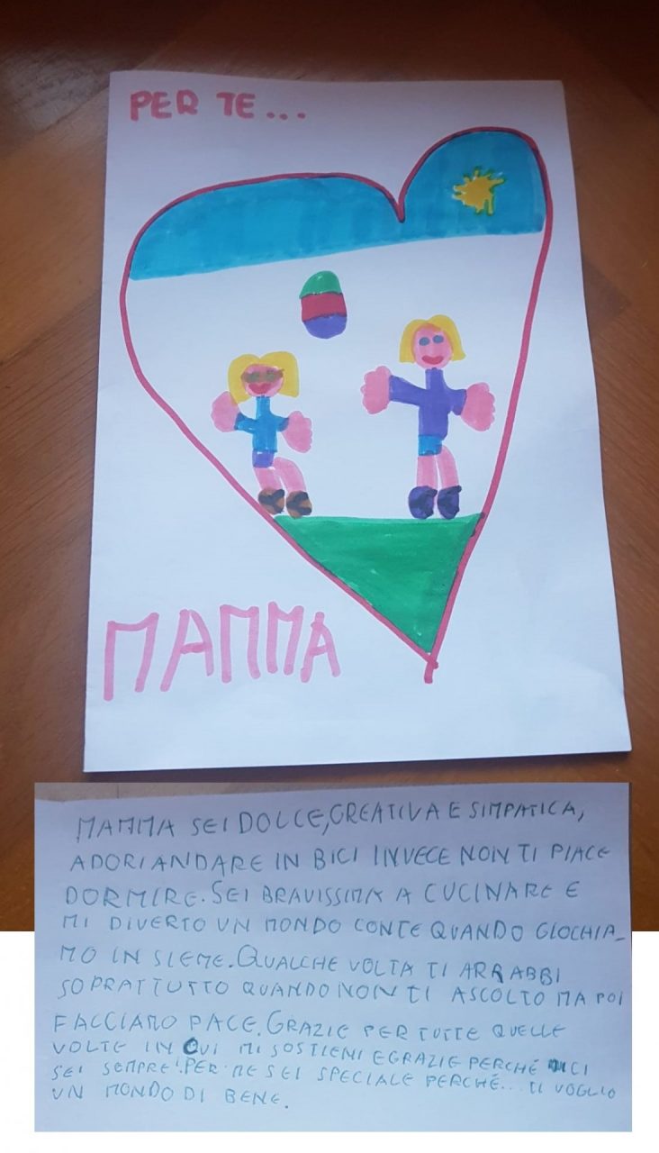 Grazie perché tutti i giorni mi aiuti a fare i compiti, perché giochiamo insieme, perché sei speciale. Ti voglio tanto bene mamma. - Evelyn Venza