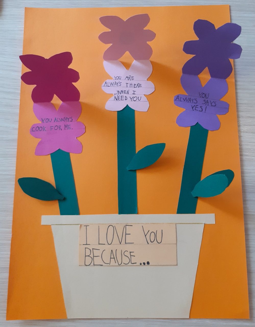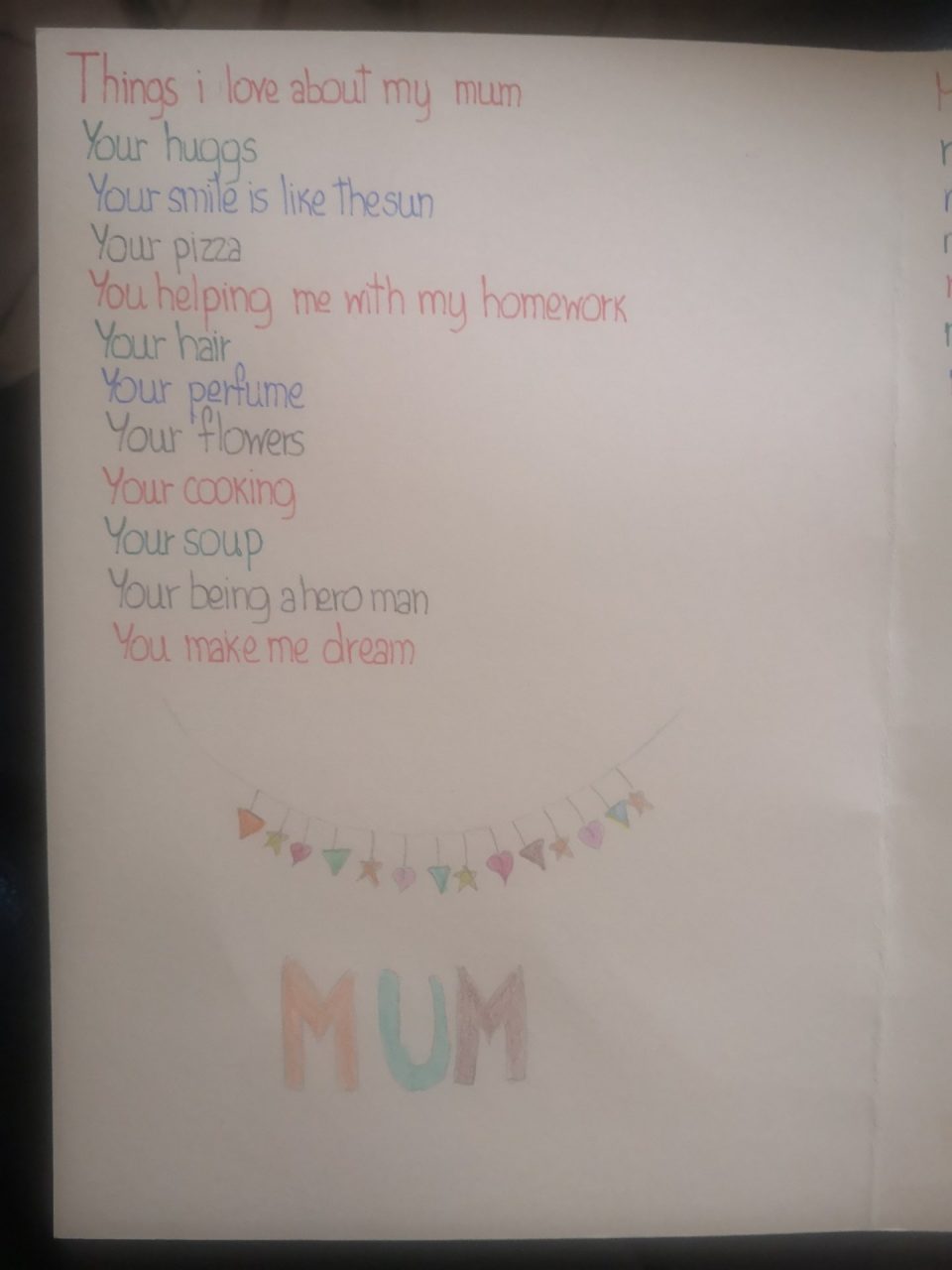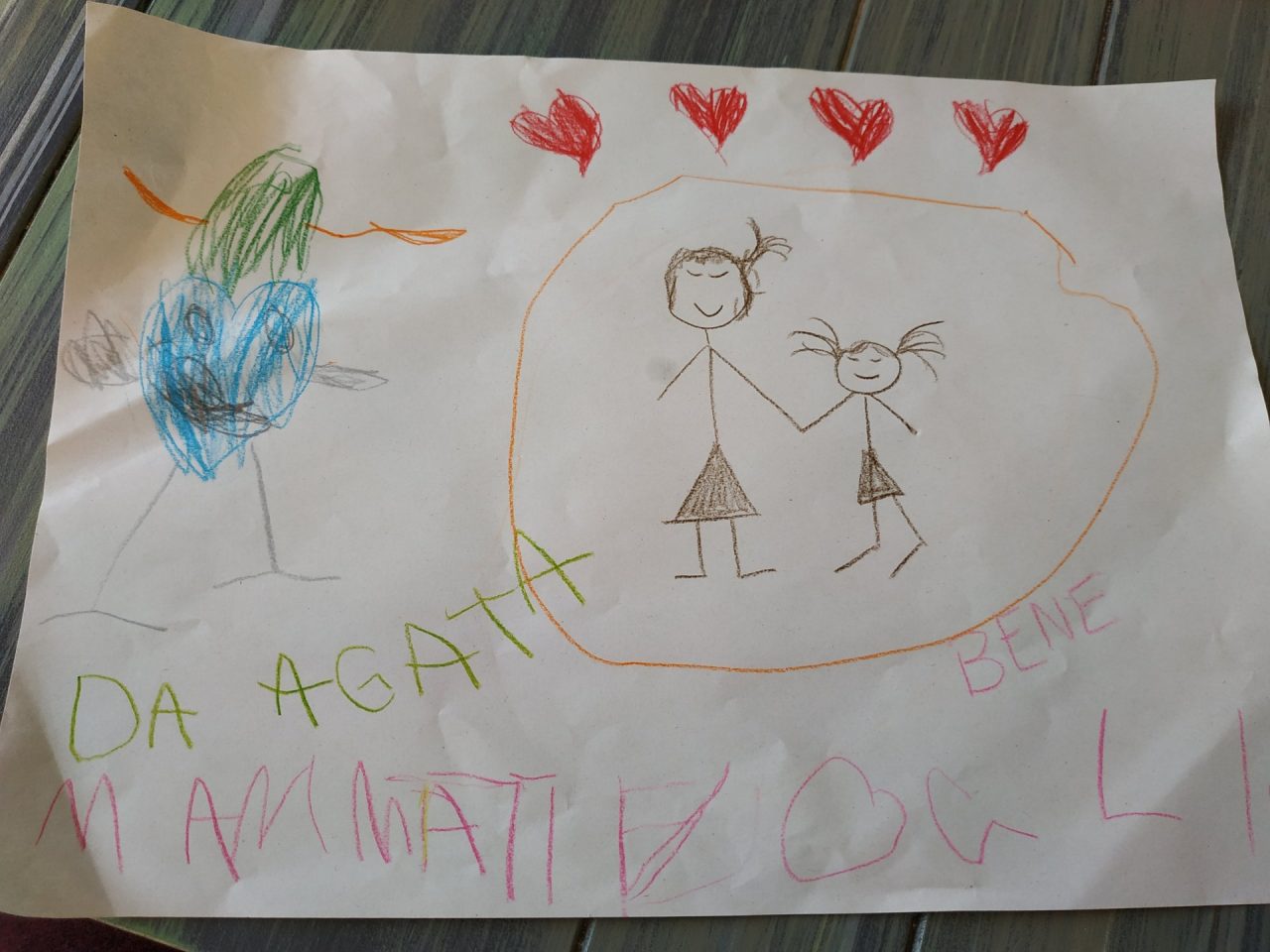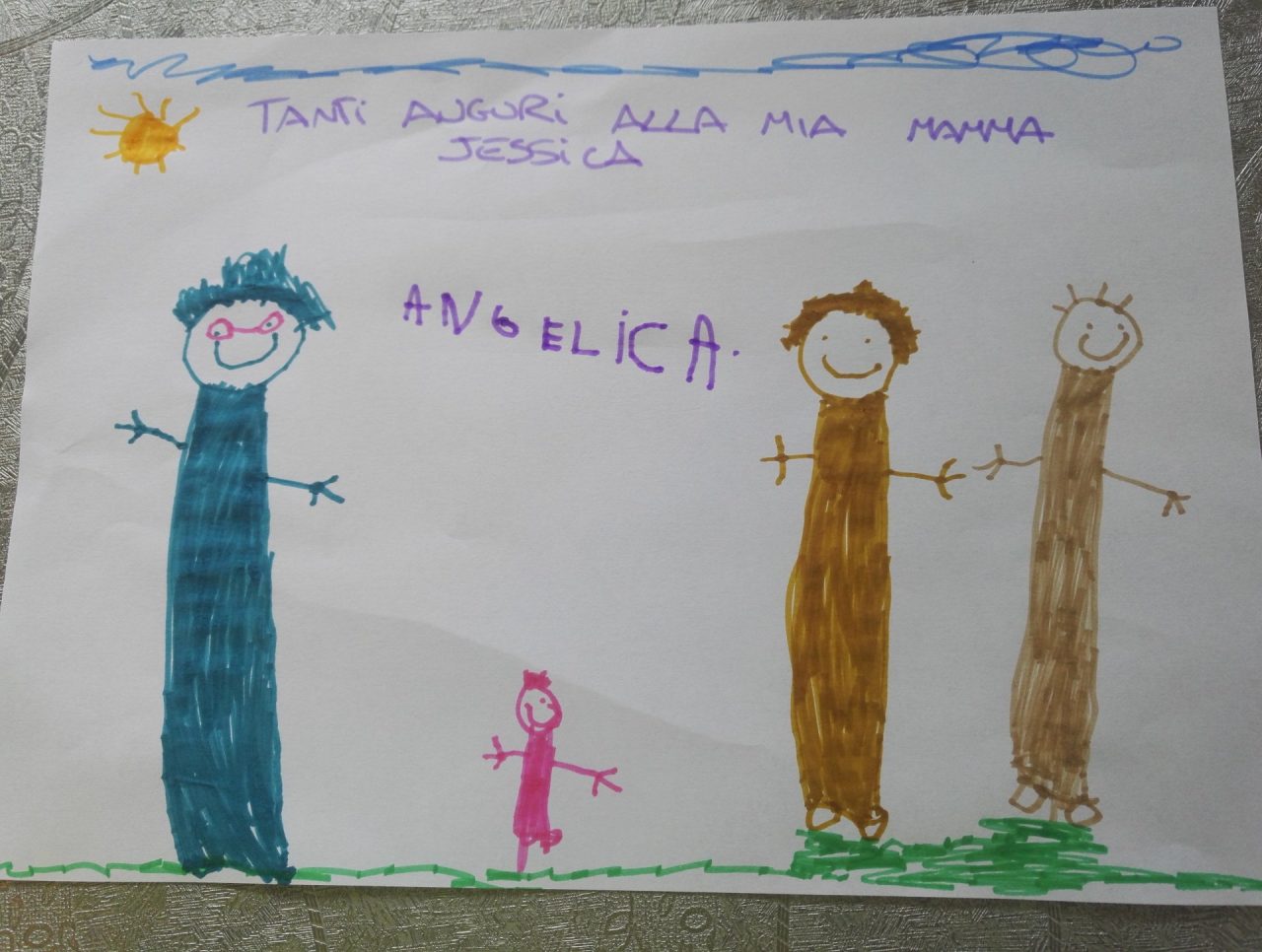Grazie perché tutti i giorni mi aiuti a fare i compiti, perché giochiamo insieme, perché sei speciale. Ti voglio tanto bene mamma. - Evelyn Venza