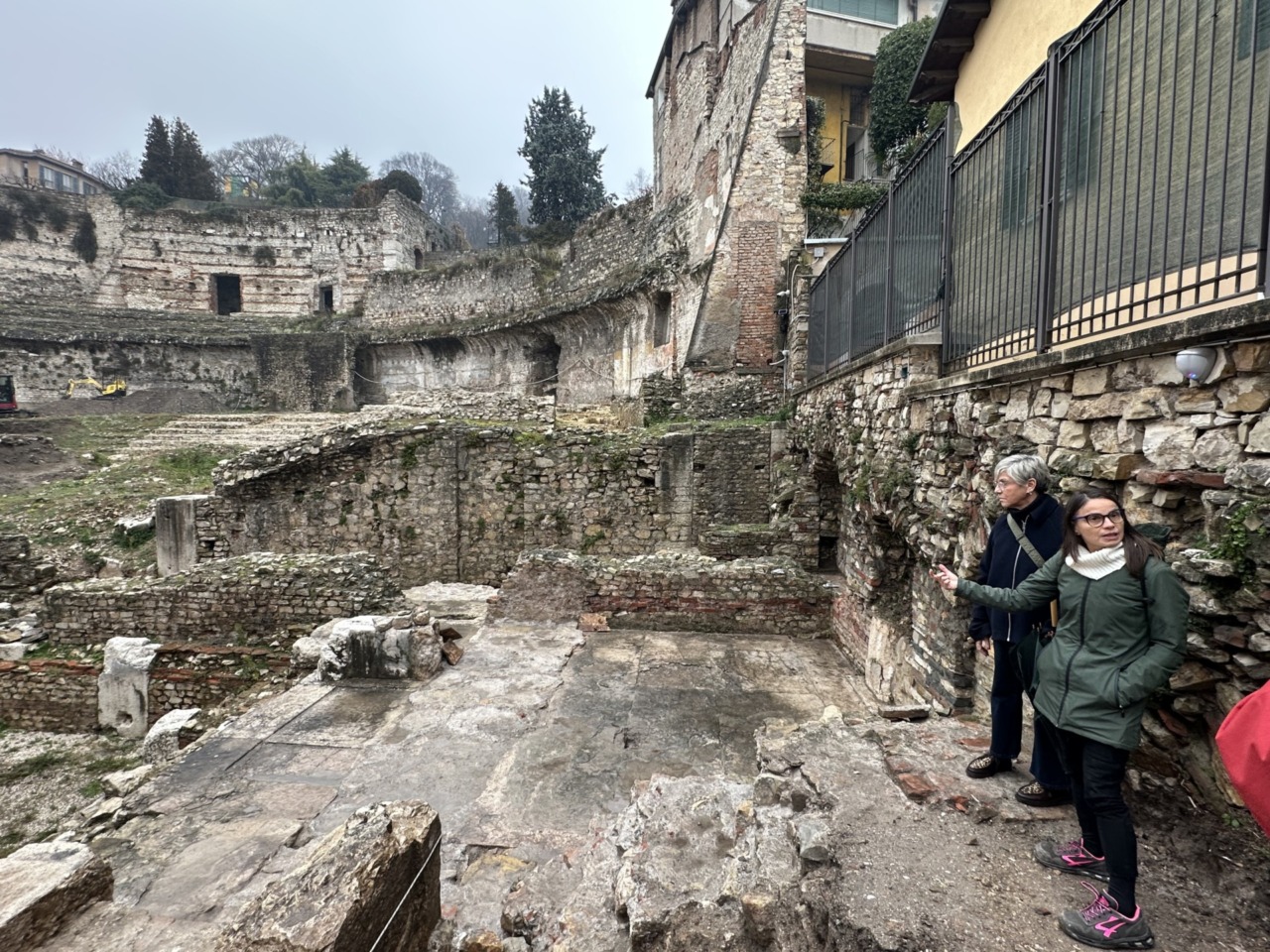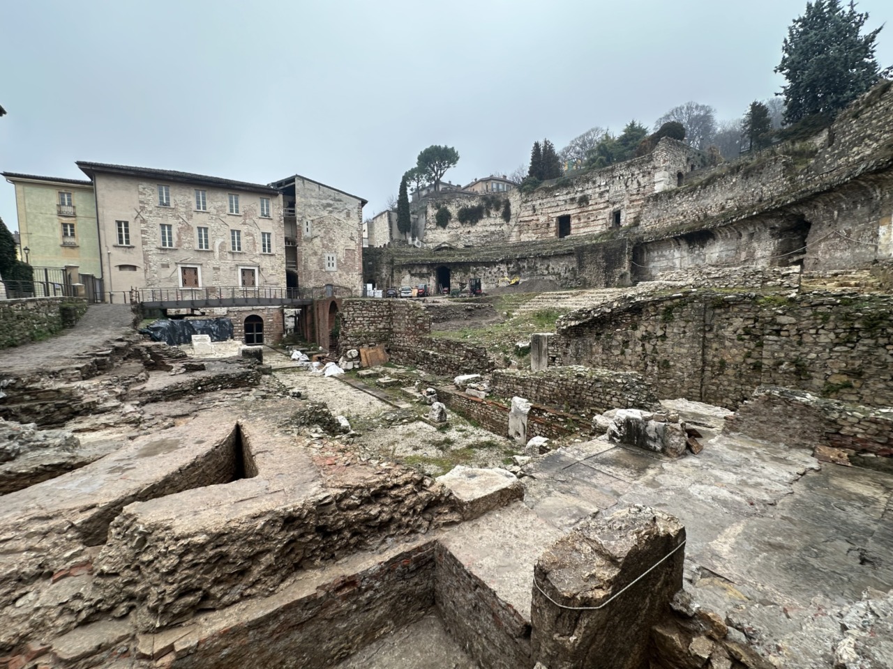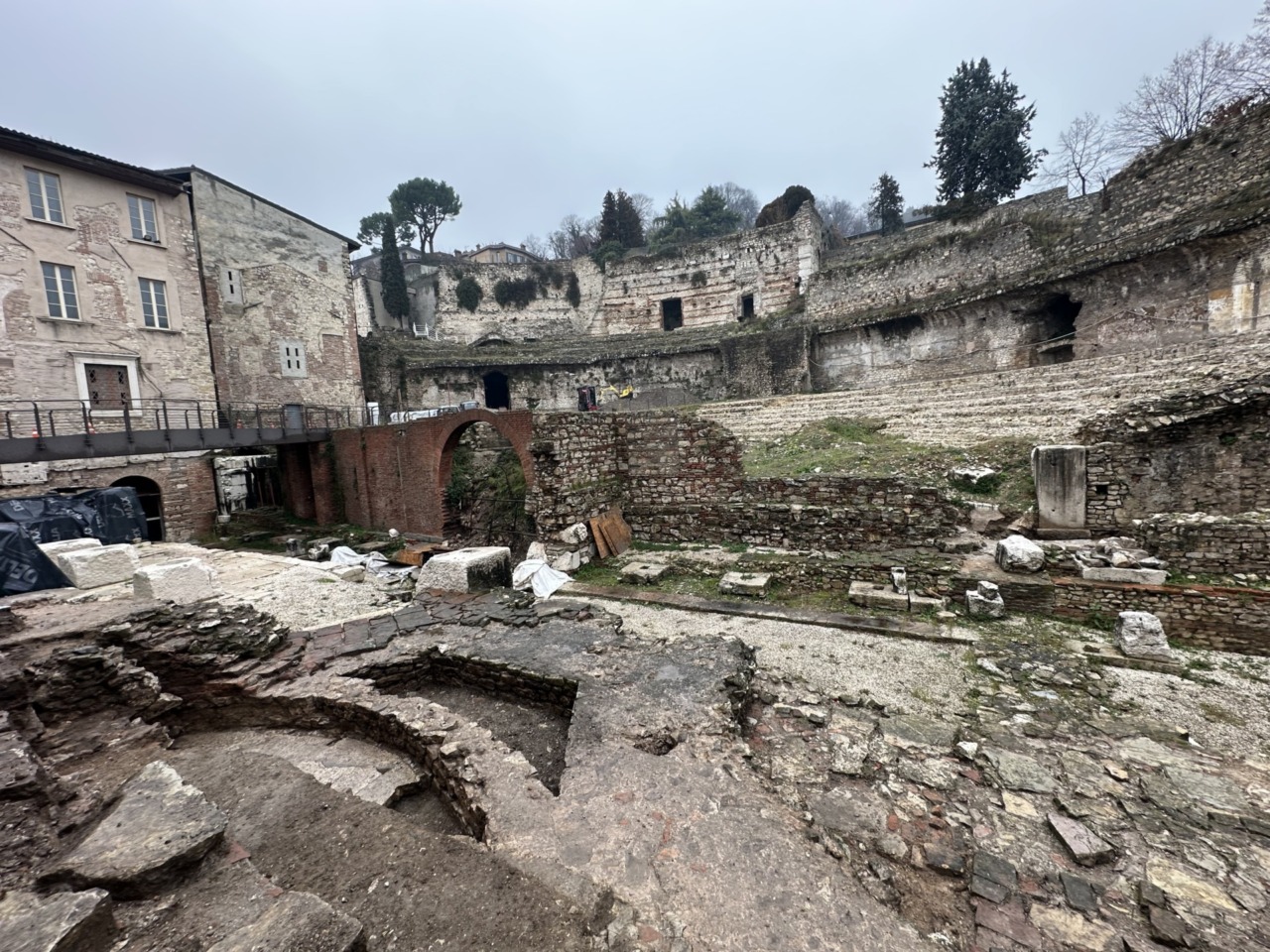 Ieri (mercoledì 17 dicembre 2025) la sindaca di Brescia Laura Castelletti, accompagnata dal Soprintendente arch. Giuseppe Stolfi e dal funzionario archeologo della Soprintendenza Serena Solano, si è recata in visita al cantiere di scavo archeologico del Teatro romano. Dopo un primo intervento condotto nel mese di luglio, in ottobre la Soprintendenza Archeologia Belle Arti e Paesaggio, con fondi ministeriali, ha avviato un secondo lotto di lavori per completare la rimessa in luce dell’intero settore orientale dell’antico teatro. Le indagini archeologiche, con la rimozione delle strutture che negli anni si erano sovrapposte al teatro e la liberazione e la messa in luce delle murature romane, già dopo poche settimane restituiscono una nuova leggibilità al teatro, uno dei più importanti edifici da spettacolo di età romana dell’Italia settentrionale.
