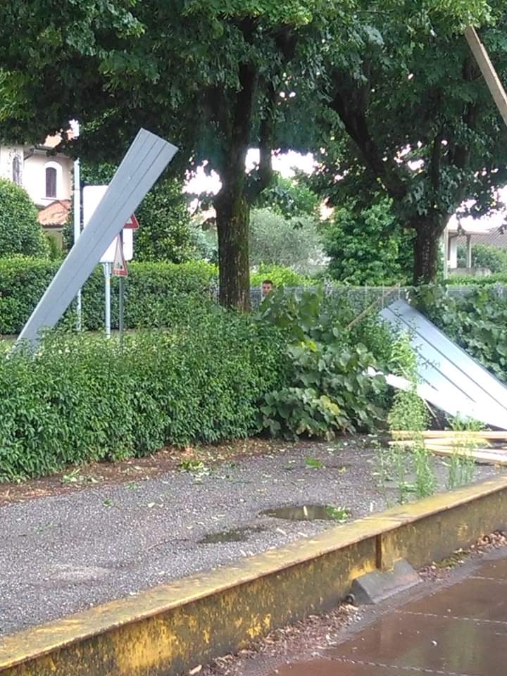 Danni ingenti anche a Bagnolo Mella. Il palazzetto si è scoperchiato. Sono inoltre volati tantissimi pezzi, ma è colpito anche internamente soprattutto nella parte Nord (ovvero davanti). Dentro c’è anche molta acqua.