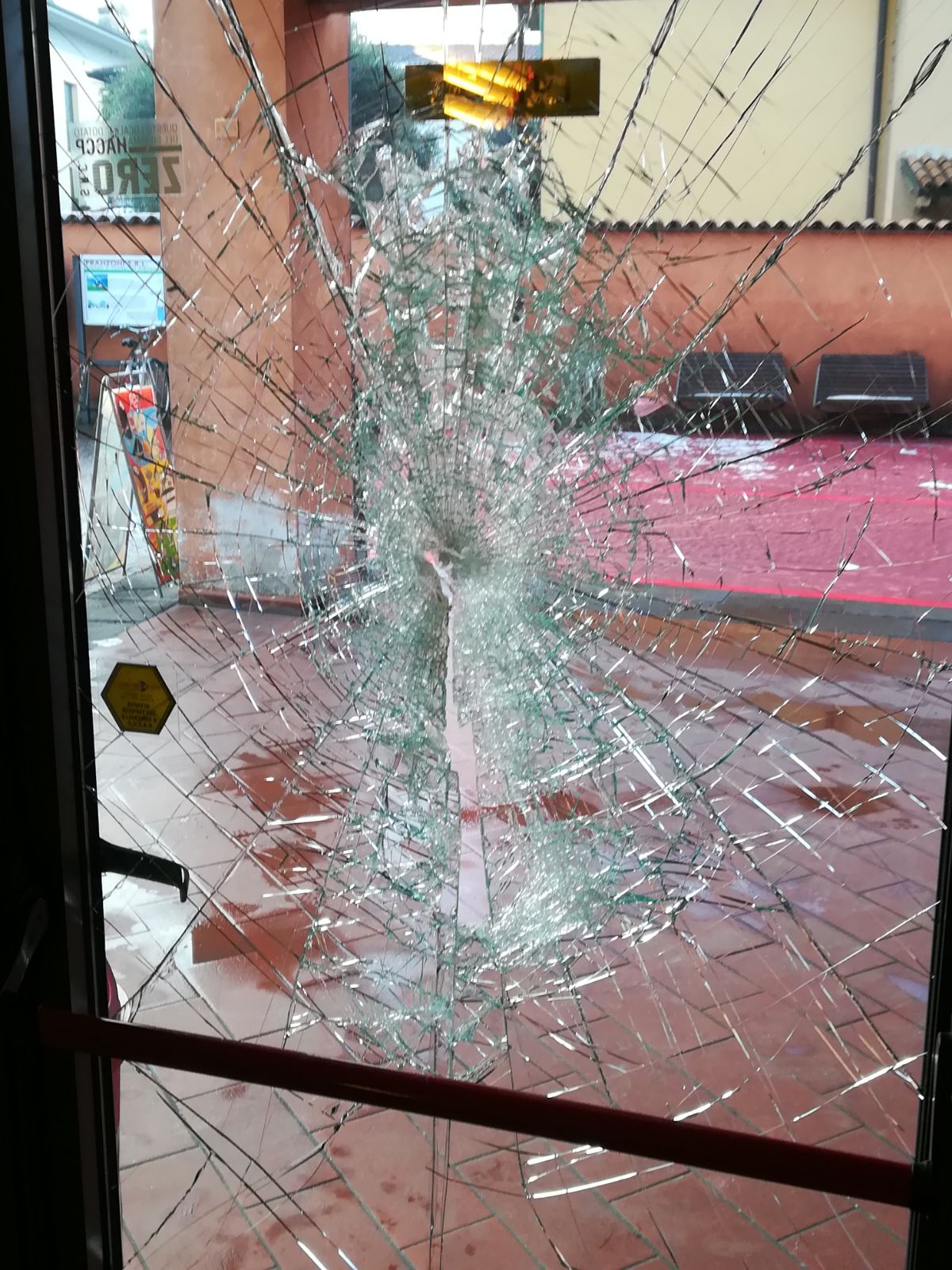 Tentato furto al bar vicino alla biblioteca. Hanno spaccato il vetro della porta d’ingresso ma qualcosa deve averli fatti scappare.