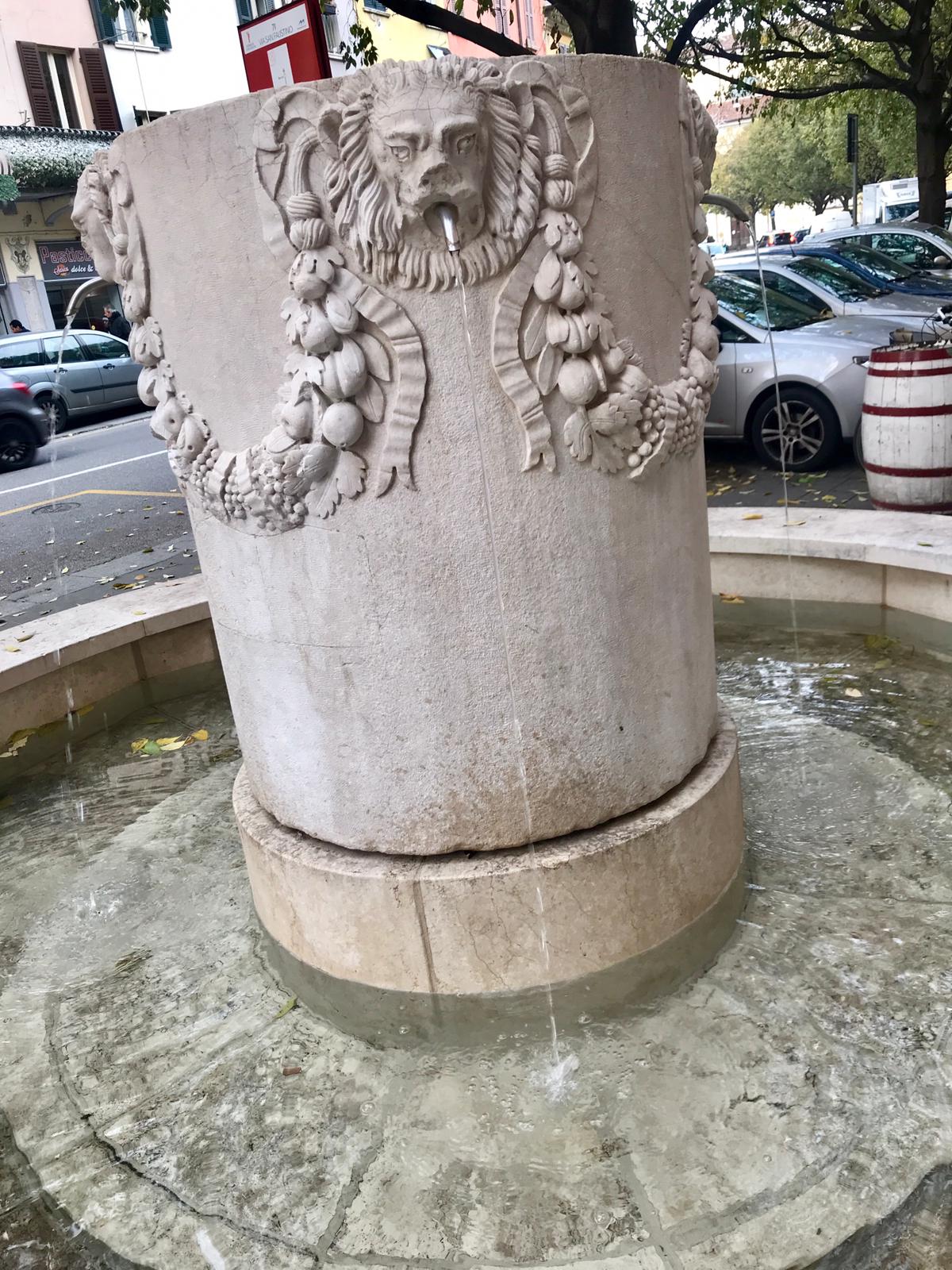 È stata pulita la superficie marmorea ed è stato risistemato il manufatto di epoca romana che, in precedenza, si trovava in cima alla fontana di corso Zanardelli eliminata nel corso della pedonalizzazione e della riqualificazione della strada. Il basamento in granito verde e calcestruzzo è stato demolito e sostituito da una pavimentazione in cubetti di porfido mentre la tenuta vasca sottostante, interessata da una vistosa perdita risalente a parecchi anni fa, è stata ripristinata attraverso una capillare sistemazione delle fughe e dei giunti presenti tra le lastre. Infine, sono stati riparati l’impianto idraulico e quello elettrico.