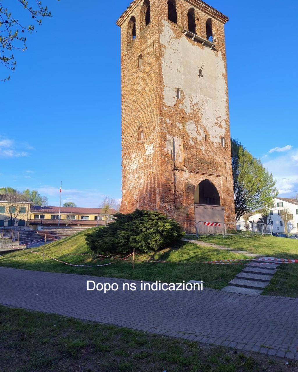 ha spiegato. Il sindaco Maura Gualdi ha sottolineato quanto la situazione sia meritoria di un intervento immediato, tuttavia la posizione di vicinanza alle scuole, l’arena con le grosse scalinate davanti ad essa hanno fatto pensare alla necessità di un intervento per limitare l’accesso all’area, come una cancellata, questo anche per sollevare dalla responsabilità insegnanti e genitori che continuamente devono richiamare i bambini per non farli giocare nei pressi della Torre.