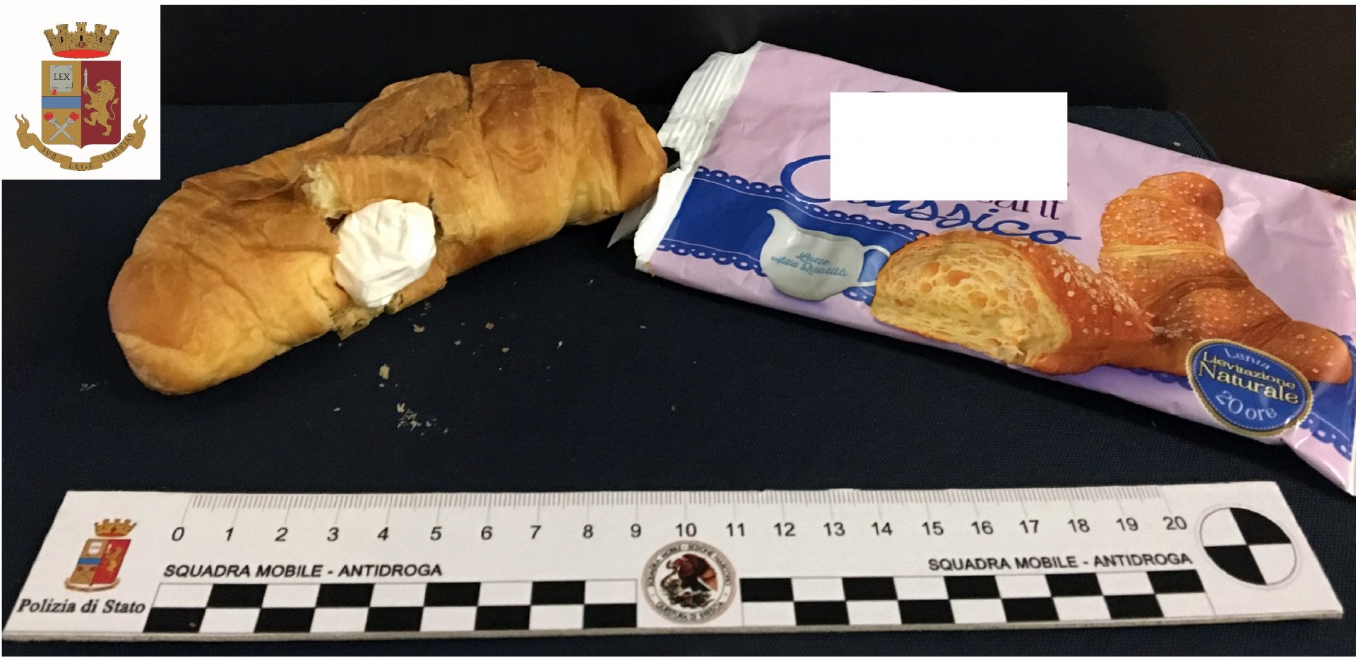 Uno dei modi utilizzati per nascondere lo stupefacente: dentro un croissant