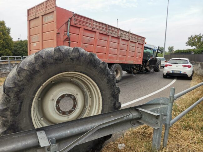 Trattore perde una ruota, traffico bloccato sulla Quinzanese.