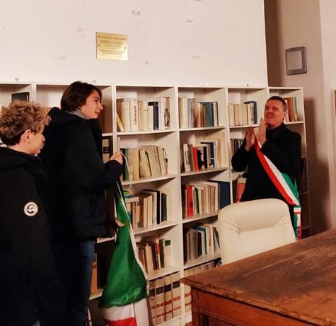 A ricordare il lascito culturale negli spazi pubblici di Cossirano è stata scoperta una targa proprio sopra gli scaffali stracolmi di libri.