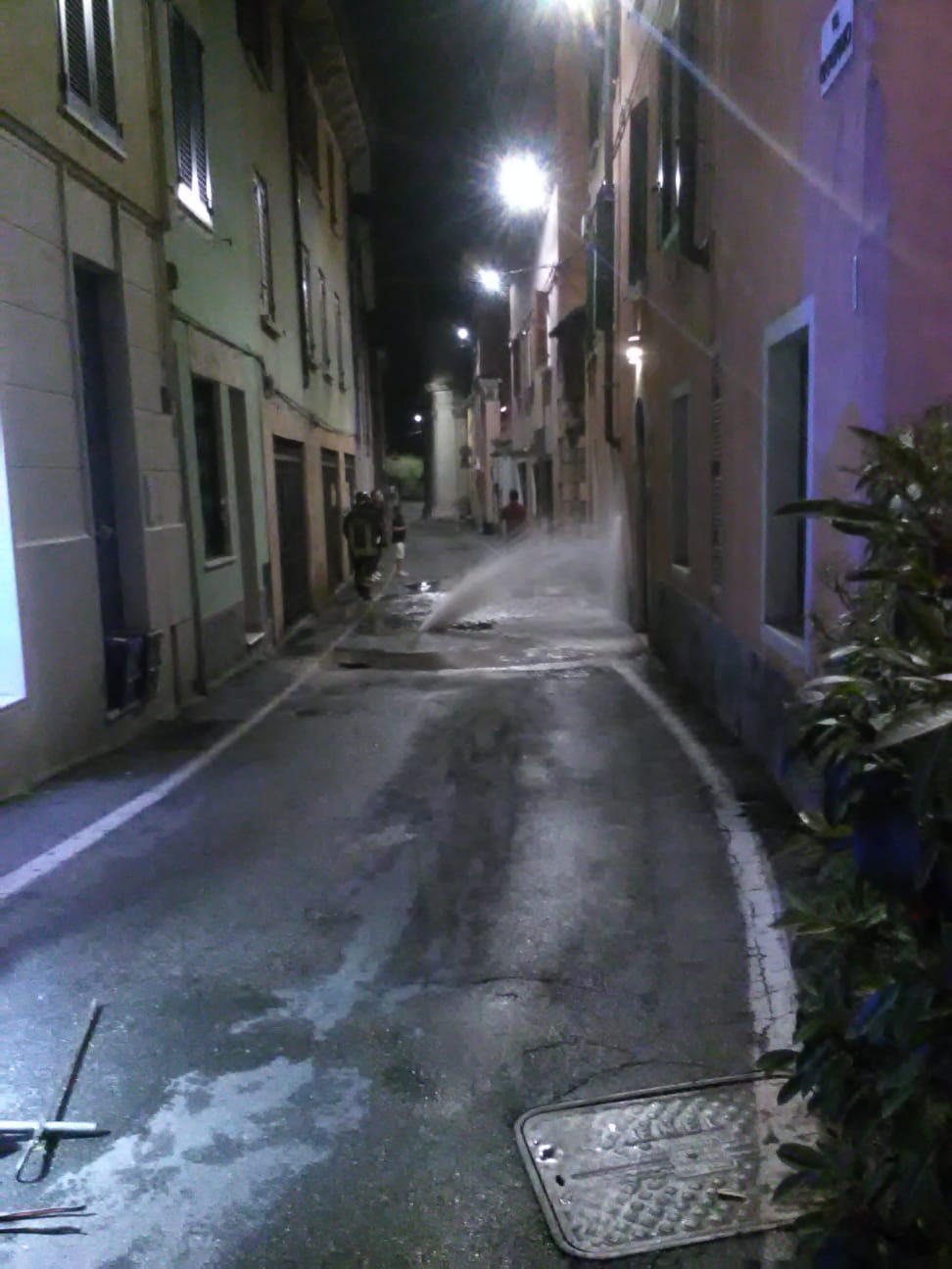 Grande spavento a Desenzano, in via Crocefisso. Un tubo dell’acqua è esploso, allagando la via fino all’arrivo dei Vigili del Fuoco.