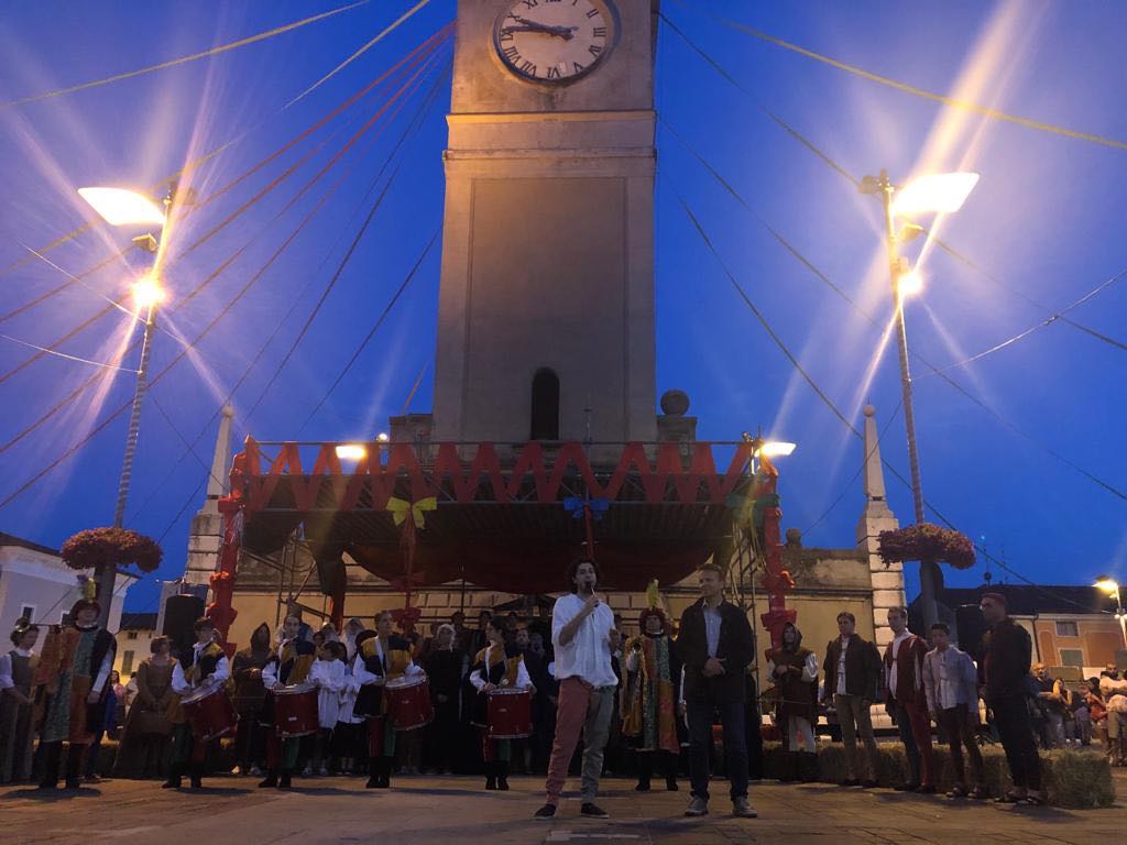 Alla cerimonia di apertura, con un corteo storico in abiti medievali, ha partecipato anche l’associazione bergamasca “Fantasia 00”. Dopo i saluti di rito del sindaco, Renato Pasinetti, e dell’assessore, Christian Bretozzi che ha fortemente voluto il ritorno del palio delle contrade dopo che è rimasto dormiente per circa 15 anni, è stato letto il proclama di apertura dei giochi. Al termine, tanti applausi, tante grida di incoraggiamento ai contradaioli che si sono cimentati. Non sono mancati, mangiafuoco e spettacolo di fuoco degli artisti di strada presenti.