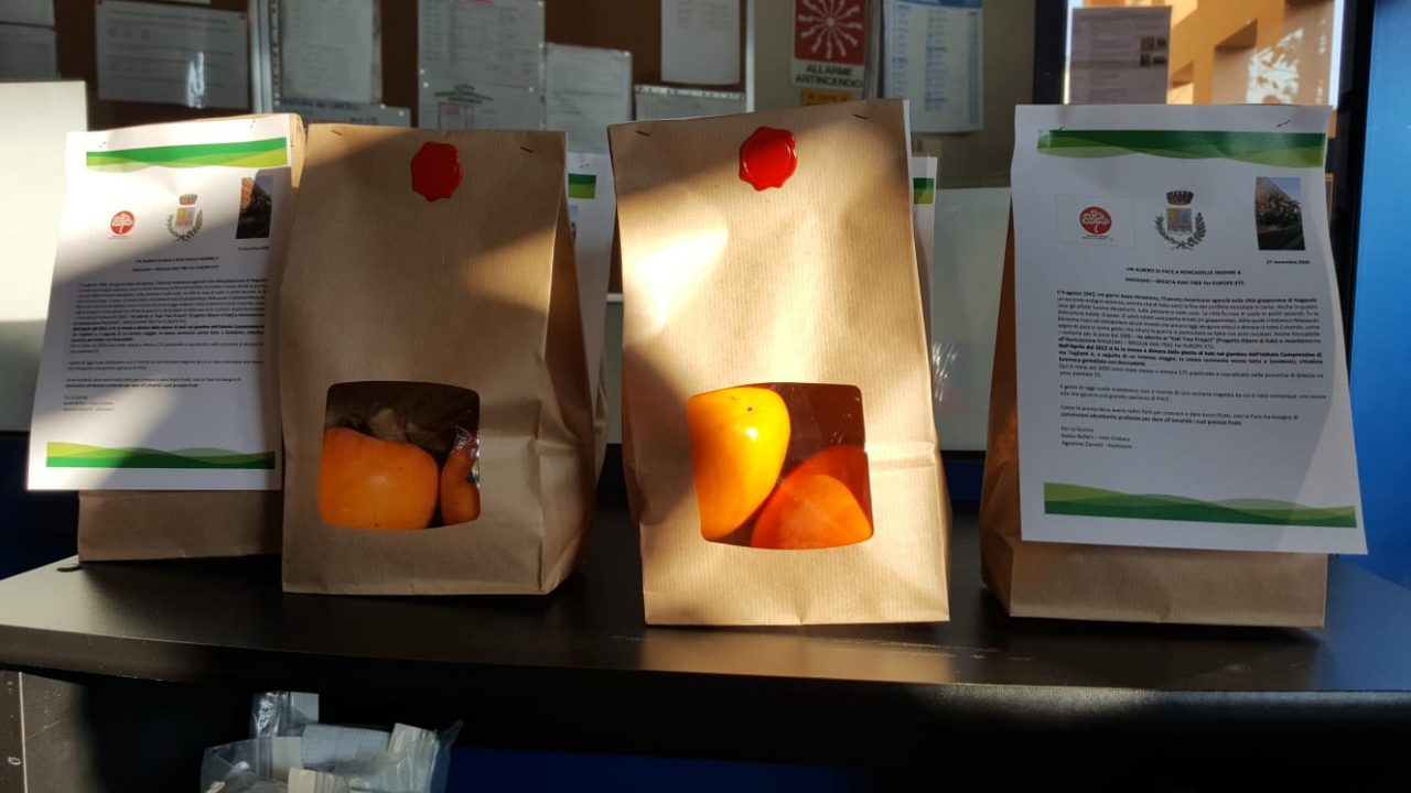 Oggi, in occasione della recente adesione all’associazione Nagasaki-Brescia kaki tree for Europe-ETS, la Giunta comunale ha deciso di consegnare a ogni classe della scuola primaria e secondaria i frutti raccolti da questo albero.