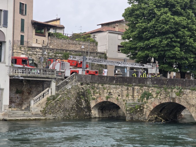 Un grosso tronco incastrato sotto il ponte romano: intervengono i vigili del fuoco