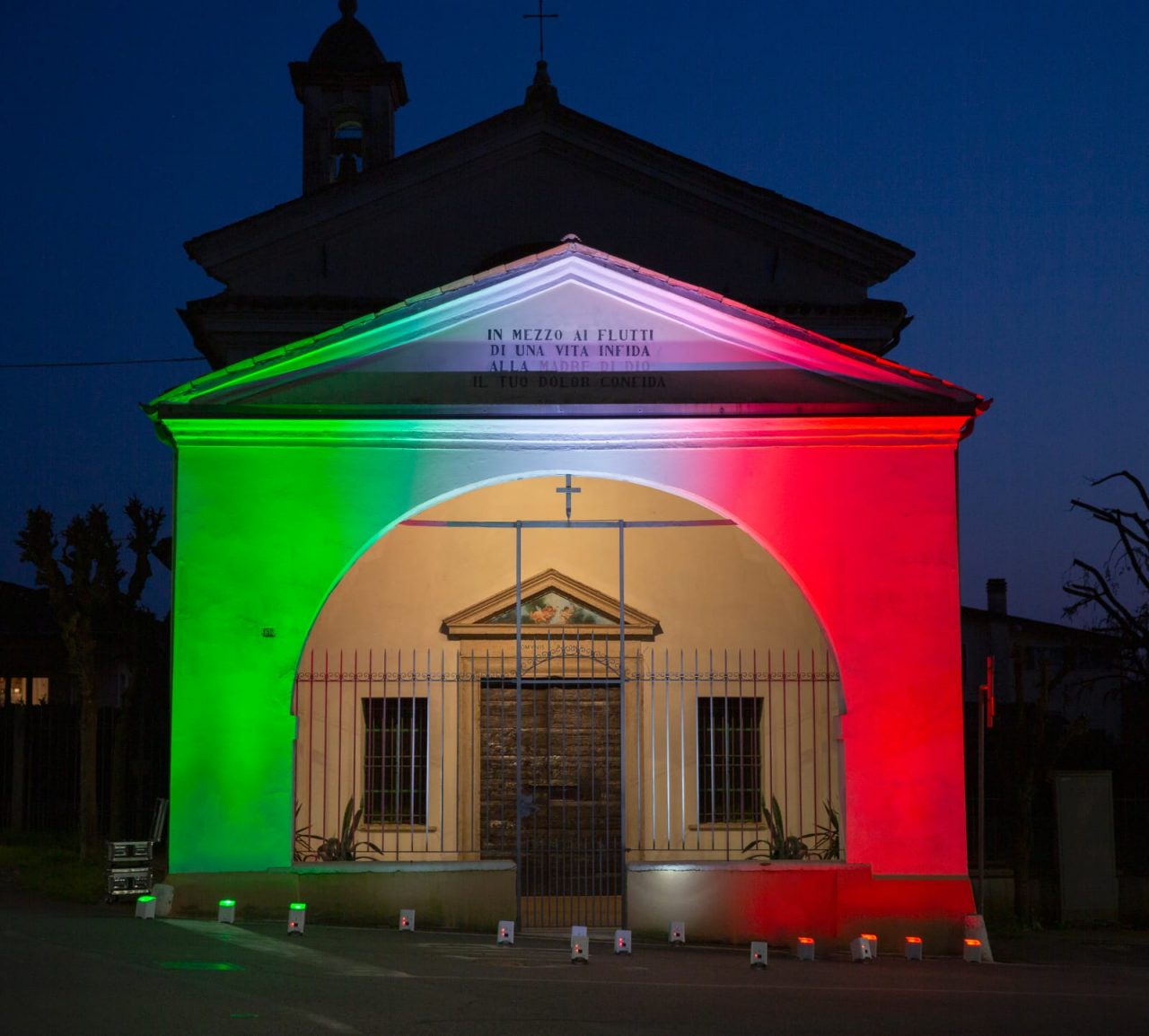 Il sindaco Mariateresa Vivaldini ha voluto lanciare a tutta la popolazione un messaggio di speranza illuminando con il tricolore i monumenti del paese.