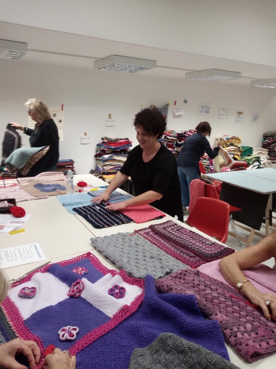Lavoro a maglia delle donne per aiutare altre donne in difficoltà.