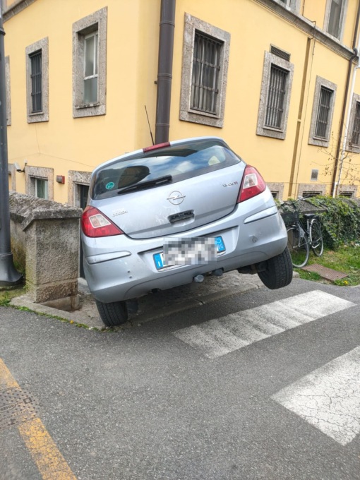 Un’auto parcheggiata…sulle scale, succede a Rovato.
