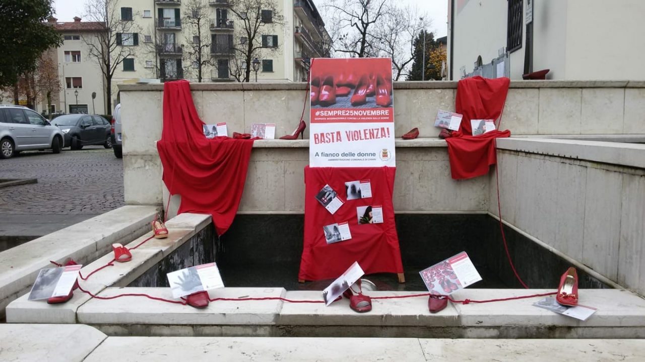 Rosso. Un colore che non può dare nell’occhio. Rosso. Come il sangue versato dalle vittime di violenza. Anche il Comune ha voluto dare un segnale forte. Questa mattina, in occasione della Giornata contro la violenza sulle donne, la fontana davanti al Municipio ha ospitato un’installazione formata da fili, drappi e scarppette rosse. #sempre25novembre: questo l’hashtag lanciato dall’Amministrazione comunale, e in particolare da diverse donne sedute nei banchi della maggioranza, le consigliere Vittoria Foglia, Gabriella Brignoli, Simonetta Marconi e Giovanna Vertua. Presente anche Angioletta Piemonti, presidente di Chiari al centro. “Non è normale che sia normale”, questo l’appello che anche a Chiari è risuonato forte e chiaro.