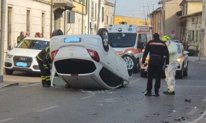 Urta l’auto parcheggiata e si ribalta in pieno centro: è successo questa mattina a Manerbio, alla guida un 20enne che per fortuna non ha riportato gravi ferite.