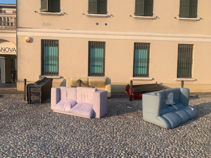 Un gesto ignobile. Questa notte, a Orzinuovi, sono stati vandalizzati i divani adagiati in piazza nell’ambito dell’installazione IlSantoIlMattoIlFiume, realizzata per il 30esimo anniversario (+1) della Cooperativa La Nuvola.