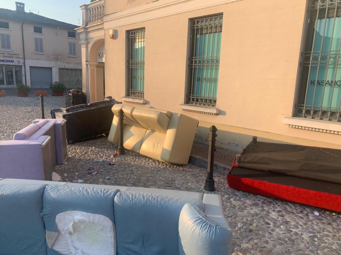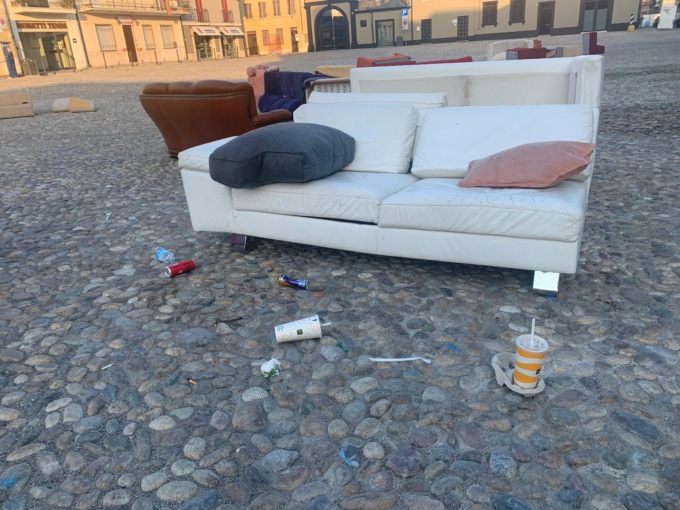 E’ successo nella notte tra venerdì e sabato, in pieno centro. Sono stati divelti e distrutti i divani adagiati in piazza Garibaldi nell’ambito dei festeggiamenti del 30esimo anniversario della Cooperativa La Nuvola, operativa con i più fragili. Inoltre, i vandali hanno abbandonato sporcizia e rifiuti e abbattuto i vestiti sotto ai portici di piazza Vittorio Emanuele. Ad accorgersi sono stati i proprietari della macelleria Bonetti e alcuni cittadini. La piazza è già stata riordinata e si procederà con la visualizzazione delle telecamere per identificare i colpevoli.