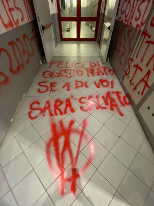 Come riportato da PrimaTreviglio, l’indagine ha preso le mosse dalle scritte apparse nella sede universitaria di via dei Caniana, a Bergamo, avvenuto nella notte dello scorso 13 dicembre 2022. Nella mattinata di ieri, mercoledì 18 gennaio 2023, gli uomini della Digos hanno perquisito su ordine della Procura Bergamo le abitazioni di tre persone, ritenute tra i presunti responsabili: una donna di 26 anni residente in provincia di Bergamo e due uomini di 68 e 49 anni, residenti rispettivamente nelle province di Brescia e Como. Ad incastrarli i filmati della videosorveglianza dell’università che li hanno ripresi all’opera.