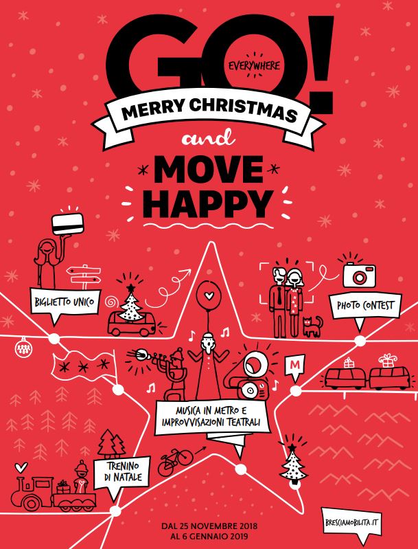 musicali di alcune delle più interessanti realtà del territorio bresciano. I primi ad esibirsi saranno i giovani musicisti del Bazzini Consort che, nei pomeriggi di sabato 8 e 15 dicembre, dalle ore delizieranno i viaggiatori che passano per la stazione San Faustino con brani d’orchestra del repertorio classico e non. Sabato 22 dicembre, invece, verrà dato spazio ad un momento itinerante tra le stazioni FS, San Faustino e Vittoria a cura dell’Associazione Culturale Musical Zoo, che porterà in metro la musica della Rusty Brass Band. Ultimo, ma non meno importante, il concerto dell’Associazione Festa della Musica, che andrà in scena sabato 29 dicembre pomeriggio all’interno della stazione San Faustino. E dato che la musica è il mezzo migliore per creare la giusta atmosfera natalizia, per un mese, dall’8 dicembre al 6 gennaio, in tutte le stazioni della metro verrà trasmessa una selezione di compilation musicali realizzate ad hoc dalle stesse realtà che si esibiranno live. Ci saranno anche delle improvvisazioni fotografiche: domenica 16 dicembre e 6 gennaio, all’interno della stazione Vittoria torna il set fotografico natalizio, dove chiunque potrà mettersi in posa per uno scatto a tema che, successivamente, verrà postato sulla pagina Instagram di BresciaTrasporti, per essere votato e dar vita a una premiazione finale. Torna anche il sempre molto atteso Trenino di Natale, amatissimo da grandi e piccini. Quest’anno nelle giornate di sabato 8, 15, 22 e 29 dicembre, sabato 5 gennaio, a Santo Stefano e per la Festa della Befana. Infine, a bordo dei treni della metro si svolgeranno alcune brevi incursioni teatrali con effetto a sorpresa in modalità flashmob. Sabato 8 dicembre andrà in scena “Nataloso”, il gioco teatrale realizzato dagli studenti del laboratorio teatrale del Liceo Annibale Calini; mentre sabato 15 dicembre sarà la volta della Scuola Teatro dell’Istituto Veronica Gambara e alle sue “Storie Metropolitane”.