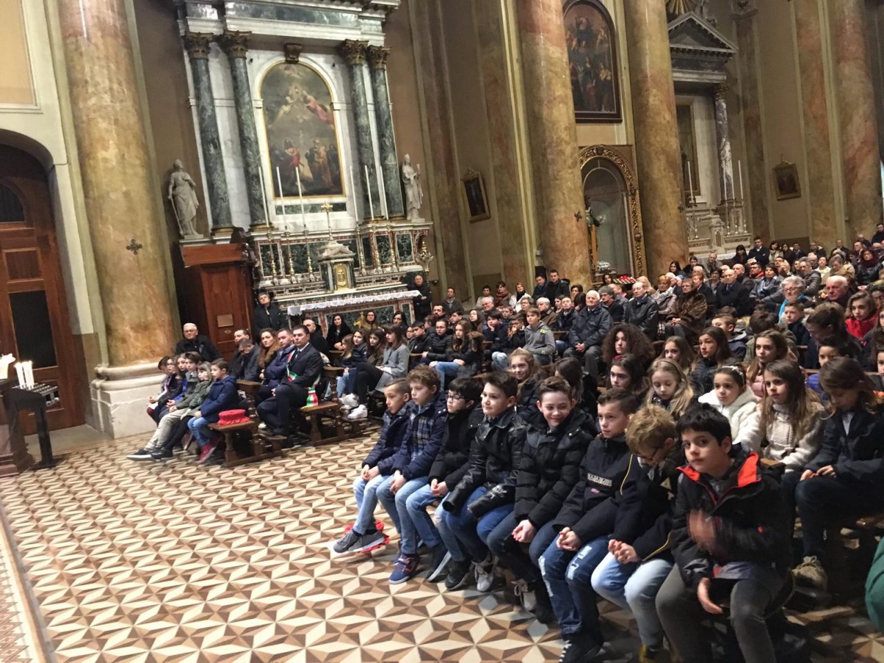 Chiesa gremita e paese tirato a festa. Questa mattina nella parrocchia di Santa Maria Assunta è il vescovo Pierantonio Tremolada a celebrare la funzione domenicale. In prima linea, oltre all’Amministrazione guidata dal sindaco Alessandro Seghezzi, ci sono i più piccoli, ma è l’intera chiesa ad essere gremita. Nessuno si è voluto perdere l’appuntamento.