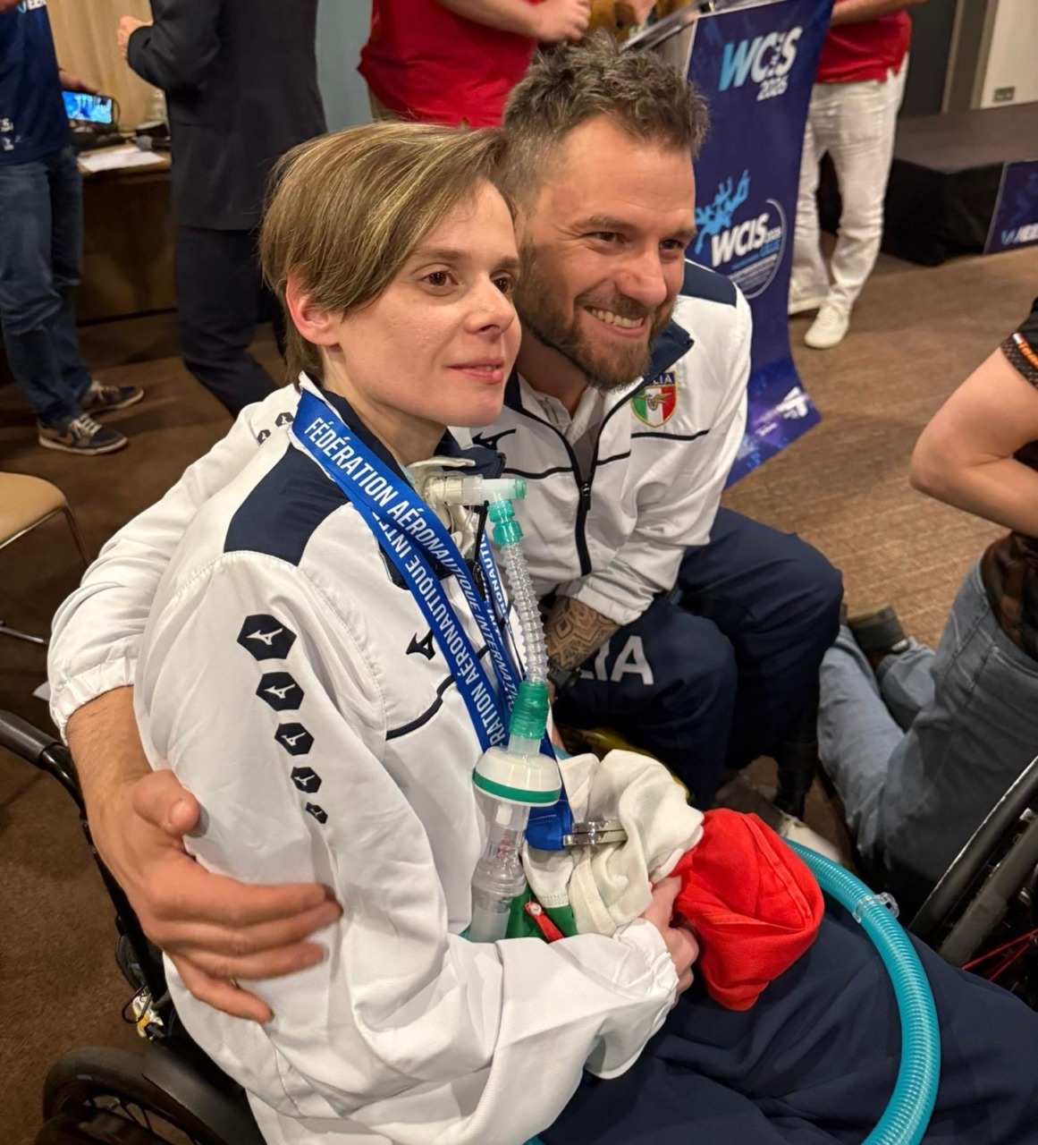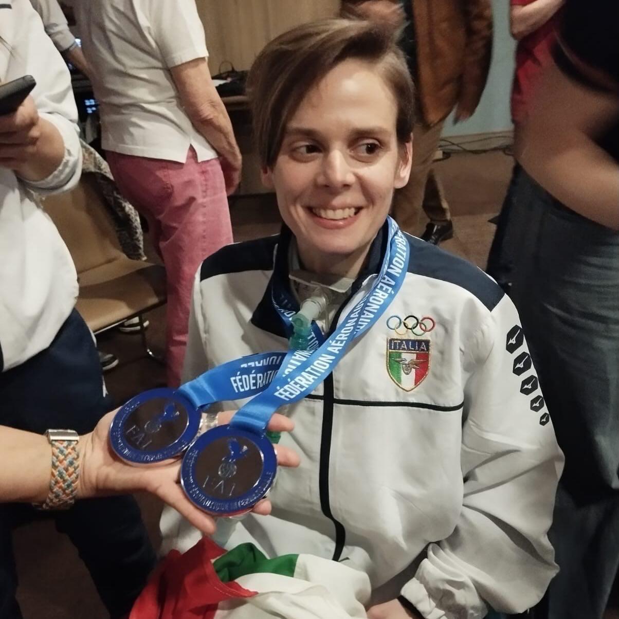 Conquistare due medaglie d’argento in una competizione internazionale, nel caso specifico la prima Coppa del Mondo e il Campionato d’Europa di Indoor Para Skydiving andati in scena a Lille, in Francia, è già di per sé qualcosa di eccezionale. Ma nel caso della 34enne di Zocco Veronica Raineri, questa vittoria è ben più di un traguardo sportivo: è la storia di una giovane donna che non si è arresa di fronte alle difficoltà della malattia (che la costringe a utilizzare una carrozzina e un respiratore artificiale) e che da oltre dieci anni rappresenta una testimonianza di coraggio, determinazione e speranza, sia attraverso il libro “Cintura vera” (scritto nel 2018), che mediante la partecipazione a tanti progetti solidali.