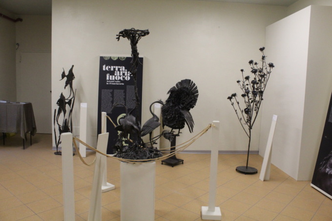 Si dice che l’arte renda immortali. Quel che è certo, ammirando le opere di Aldo Caratti in mostra nella sala espositiva della Ricchino, è che esse trasudano di vita e che, a distanza di 23 anni dalla morte del maestro, non hanno perso la loro capacità comunicativa. “Quello che le opere di mio padre trasmettono non ha bisogno di spiegazione, parlano da sole – ha spiegato Donata Caratti, la figlia di Aldo, ospite venerdì 19 dicembre in Municipio al primo dei tre incontri. Dopo gli interventi del presidente della Ricchino Gianpietro Costa e del vicesindaco Simone Agnelli, che ha evidenziato l’enorme lavoro fatto dal presidente, dai maestri e dal Direttivo della scuola nell’ultimo anno e mezzo per non disperderne il patrimonio, dicendosi “pieno di orgoglio di fare parte di questa comunità, quello che la Ricchino ha donato è inesprimibile a parole”, è toccato al presidente di Fondazione Cogeme Gabriele Archetti. “Come distinguo il lavoro artigiano da quello di una qualsiasi persona? – ha esordito – Il lavoro non richiede l’apprendimento attraverso un maestro, l’arte sì. L’attività artistica ha un valore perché riconosciuta rilevante per la crescita di una comunità. Le opere d’arte sanno dirci qualcosa che racconta il senso profondo della nostra esperienza di umanità”. L’avvincente dialogo con Donata Caratti ha portato alla luce alcuni aspetti della personalità del padre, nato a Rovato nel 1912 e iscritto alla scuola Ricchino fin da bambino (ha iniziato dal disegno e tra i suoi maestri c’era Gerolamo Calca). Formatosi come fabbro nell’officina paterna, dopo la Seconda Guerra mondiale ha potuto dedicarsi alla sua grande passione: la scultura in ferro battuto. E’ stato il fondatore del gruppo i bruzafer della Franciacorta. “Lui voleva realizzare qualcosa che diventasse immortale, nelle sculture vediamo la sua anima, le definiva le sue creature – ha spiegato la figlia – Quando lavorava lo osservavo da lontano, il fuoco gli illuminava il viso e io lo vedevo come un Dio. Per me è stato un maestro di vita, oltre che un buon padre”. Profondamente schivo di carattere, Caratti era un maestro immensamente generoso. “Lui voleva tramandare la sua arte, dedicava ore all’insegnamento e non aveva segreti per i suoi allievi”, ha aggiunto Donata. La professoressa Francesca Stroppa, che ha curato il catalogo della mostra collettiva, ha spiegato innanzitutto il titolo, che riprende tre elementi primordiali della creazione, collegandoli ai tre artisti (il fuoco al ferro di Caratti, l’aria al vetro di Castelvedere e la terra alla pietra e al marmo delle sculture di Grassi). “L’arte è composta da schemi compositivi antichi che vengono ripresi in base alle esigenze della società, un’opera d’arte è una concentrazione di significati”, ha sottolineato.