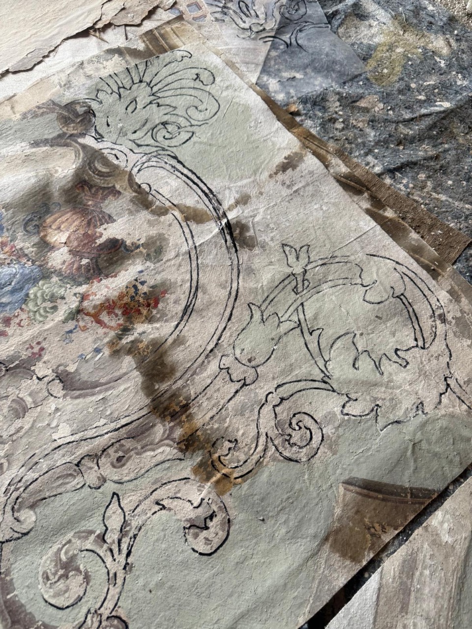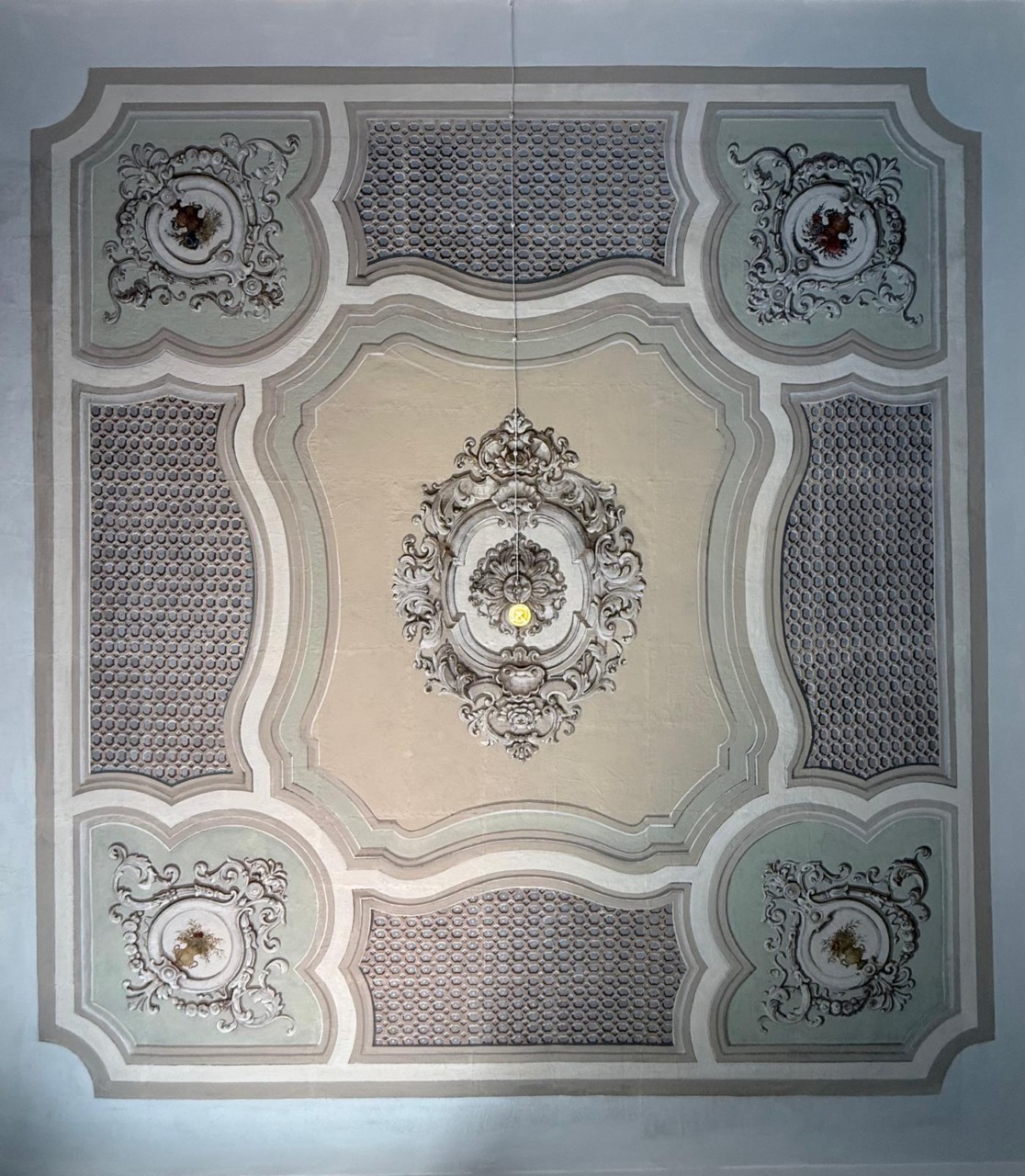 “Si trattava di un soffitto dell’800 dipinto a tempera su carta pecora applicata ad una tela di juta. Un’antica tecnica che si utilizzava spesso nel Centro e Sud d’Italia, in passato queste enormi tele venivano fissate a delle travi di legno con dei tasselli come a formare un enorme quadro che adornava i saloni dei palazzi nobiliari – ha continuato a spiegare – Ed é proprio di una di queste dimore di cui mi sono occupato con il mio studio, Albaura”.