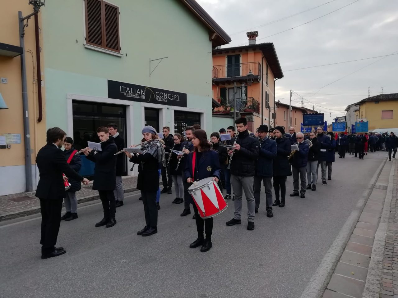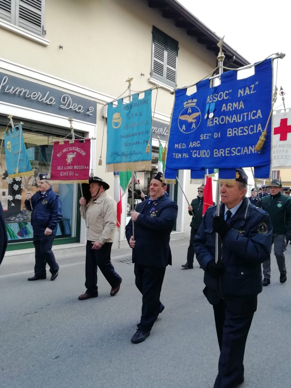 Cerimonia in grande stile questa mattina a Ghedi per l’inaugurazione della sede dell’associazione Arma Areonautica. I festeggiamenti sono inziati con l’alzabandiera al monumento dei Caduti: presenti insieme al presidente del’associazione ghedese Albino Pansabene anche il consigliere nazionale Giancarlo Milani, primo maresciallo scelto, il sindaco Federico Casali, l’assessore ai Servizi sociale Delia Bresciani, il comandane del sesto stormo colonnello Roberto del Vecchio, oltre alle diverse sezioni dell’associazione dei paesi limitrofi e le associazioni civili e militari del paese. L’evento è stato introdotto dal corpo musicale cittadino, diretto dal maestro Paolo Civini.