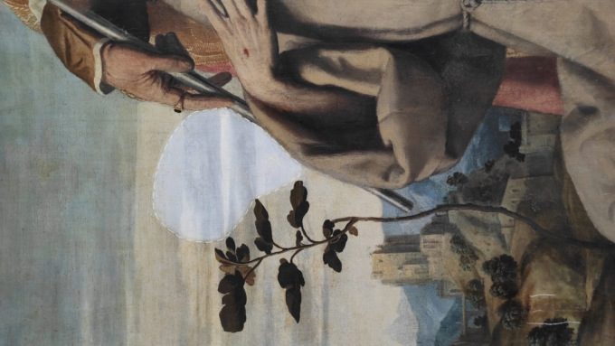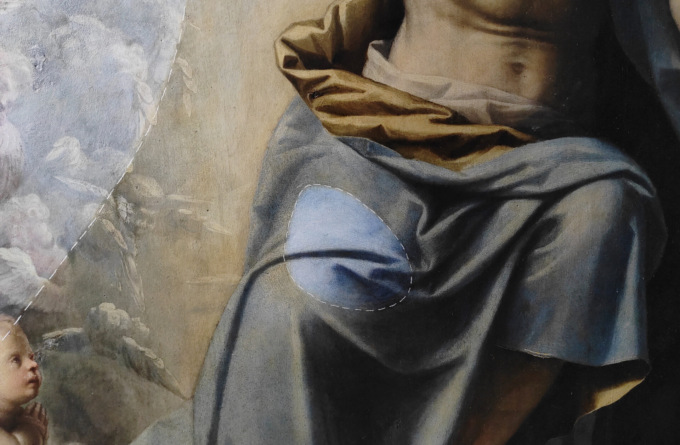 “Sulla superficie pittorica, il restauro non si è limitato a un recupero estetico, ma ha dovuto in primo luogo provvedere alla messa in sicurezza e al fissaggio di particelle di materia pittorica sollevate e in procinto di caduta, a causa di un lieve restringimento della fibra lignea nel corso del tempo – spiega il restauratore Antonio Zaccaria –. La struttura del film pittorico e le velature di rifinitura sono arrivati a noi in buono stato di conservazione, segno che le passate puliture non avevano fortunatamente fatto ricorso a solventi aggressivi, forse per un particolare riguardo nei confronti di un capolavoro del più venerato tra i maestri bresciani. Tuttavia, la vecchia vernice sovrapposta alla pellicola pittorica risultava notevolmente alterata, virando dall’originaria trasparenza verso un giallo-verdognolo che, complice l’inscurimento indotto anche dal nerofumo e dai depositi di pulviscolo atmosferico, aveva completamente modificato la temperatura cromatica della tavolozza di Moretto. Nel corso dell’attuale restauro, la delicatissima e selettiva operazione di pulitura ha visto riaffiorare progressivamente la luce argentina e le cromie cristalline che nei secoli hanno incantato schiere di studiosi, critici e pittori. Le indagini diagnostiche condotte sull’opera da Vincenzo Gheroldi, in più passaggi coordinati con le fasi tecniche, hanno consentito di declinare le metodologie di intervento con piena consapevolezza di ogni minima variazione della raffinatissima tecnica esecutiva originale. Hanno concluso l’intervento la stuccatura nelle cadute di materia pittorica, la ricostruzione della policromia mancante e la stesura di un leggerissimo velo di resina protettiva.”