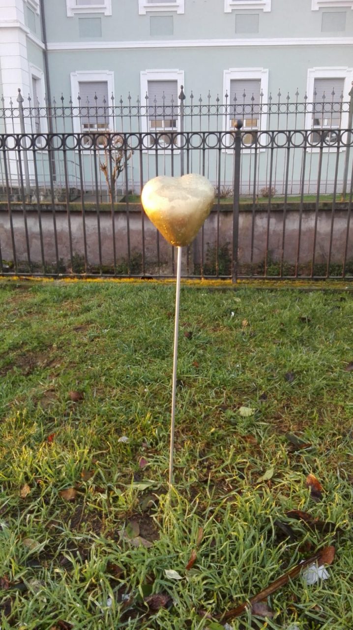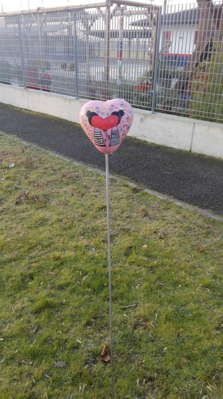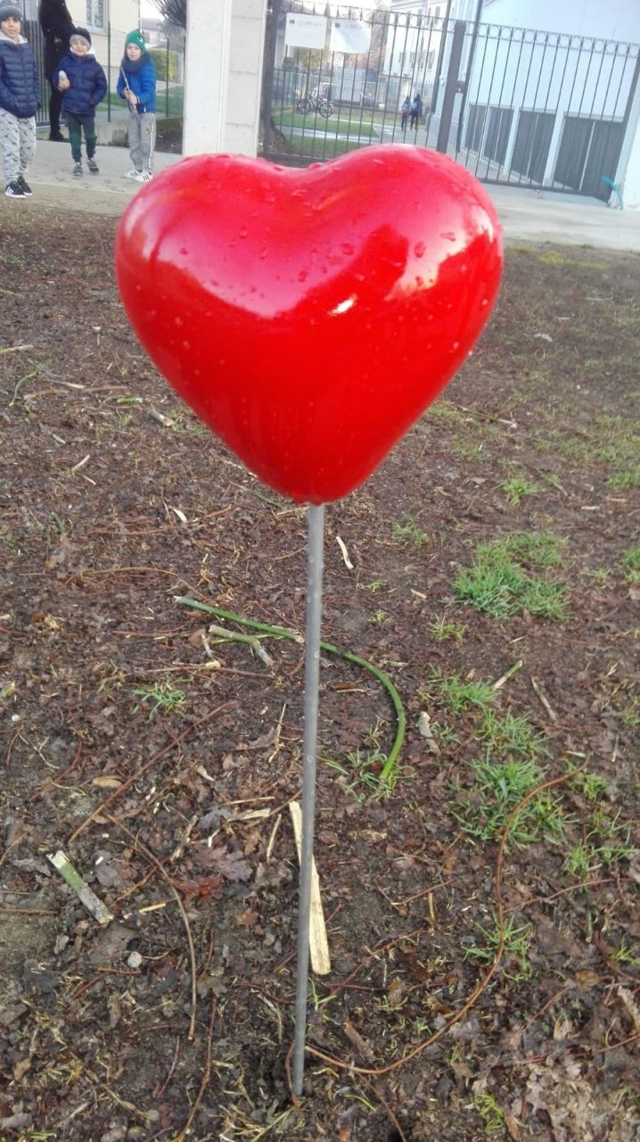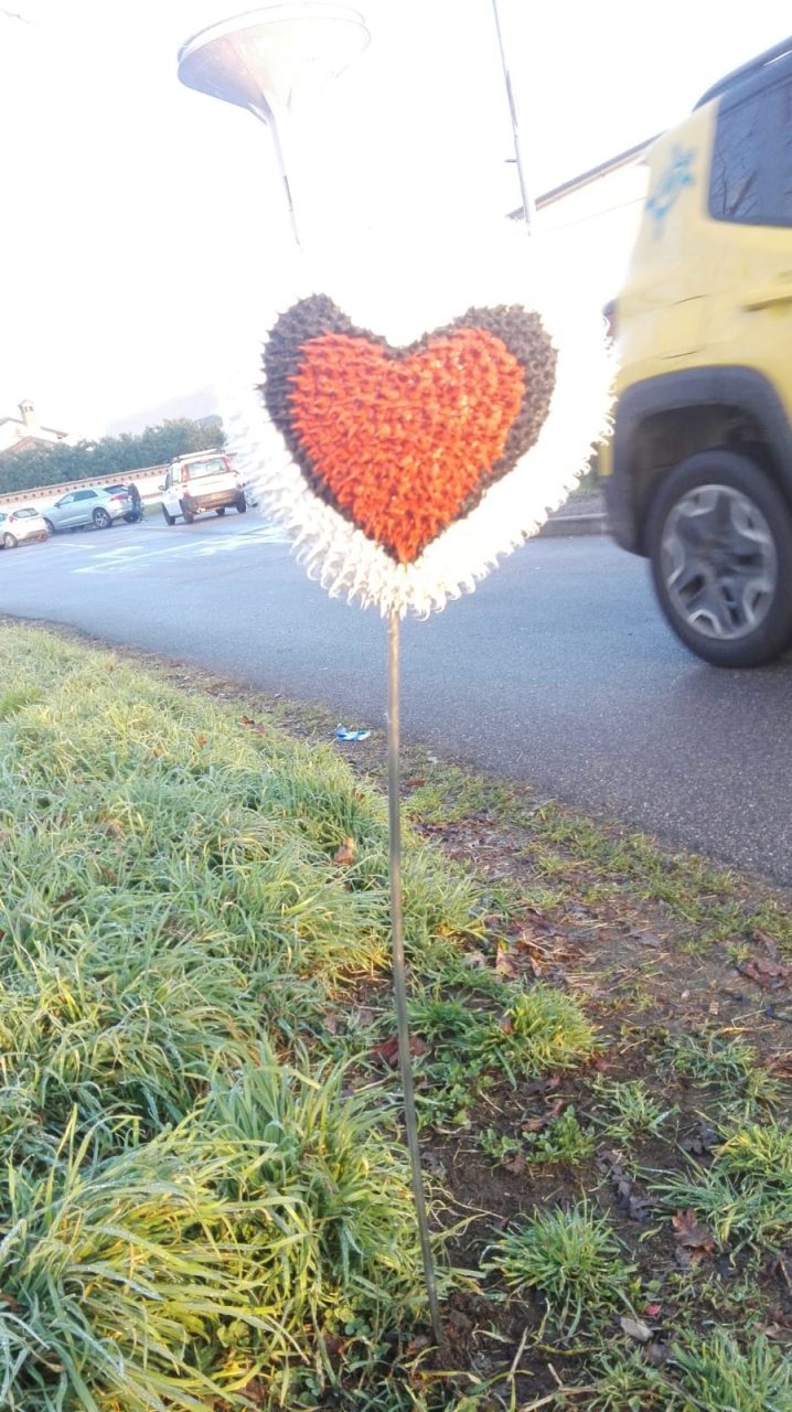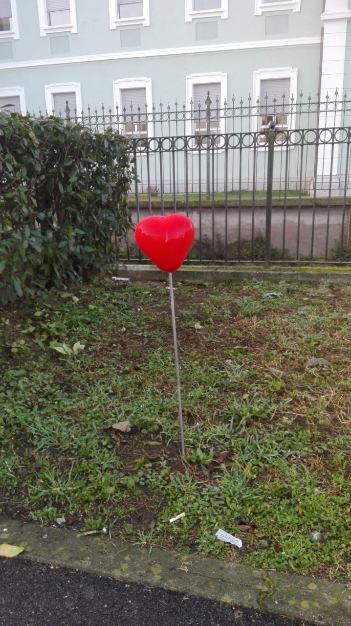 Questa mattina delle sculture a tema San Valentino sono comparse in paese: era successo anche l'anno scorso.